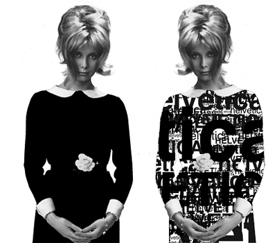 La petite robe noire et l’Helvetica présentent beaucoup de points communs, leur naissance tout d’abord, qui correspond à une période clef de l’histoire ; la petite robe noire, proposée avec succès au milieu des Années 20 par Gabrielle Chanel, s’inscrit à une période où les femmes découvrent une nouvelle liberté ; le vêtement participe à cette émancipation ; exit les vêtements corsetés, la petite robe de Chanel adoptera une coupe simple, confortable et aisément imitable, le noir alors couleur des veuves et des domestiques descend dans la rue. L’Helvetica, nous l’avons vu plus haut, correspond et accompagne ce besoin de modernité dans notre société.