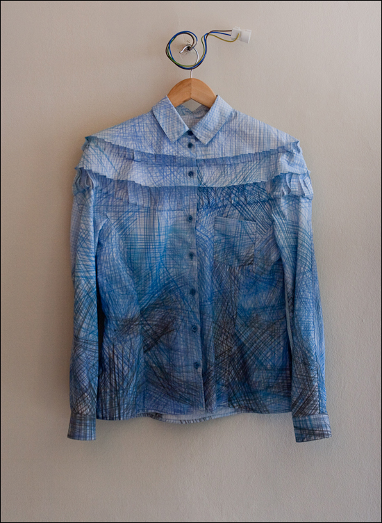 Chemise-origami imprimée « traces de feutre », d’Alexandra Verschueren