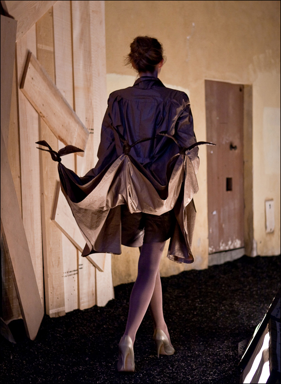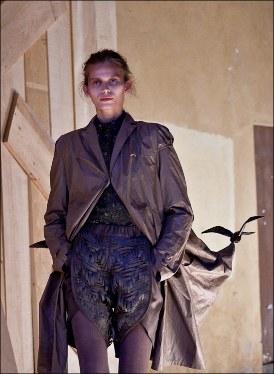 Deux photos d’un des moments forts du défilé, il s’agit du passage de la seconde collection des lauréats de l’édition 2009 Marite Mastina et Rolands Peterkops (aka Mareunrol’s).