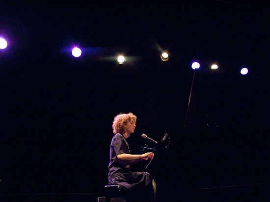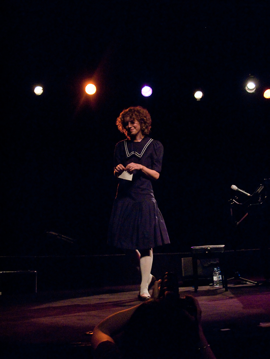 Spectacle intimiste à la faune bigarrée venu voir et écouter cette jeune fille en robe marinière qui rappelle Miranda July, époque Me and You and Everyone We Know.