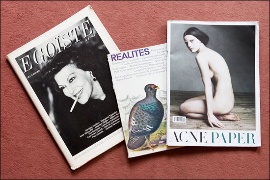 J’ai mis la main sur quelques exemplaires de ces magazines, acquis tantôt dans une brocante, dans la rue ou simplement donnés. Je les ai associé avec un de leur successeur, le magnifique Acne Paper.