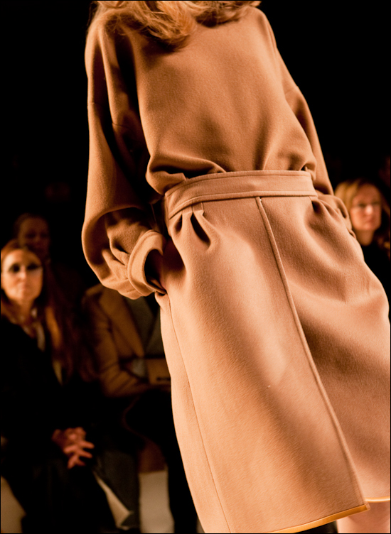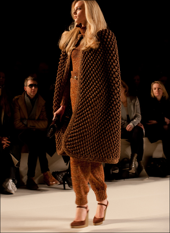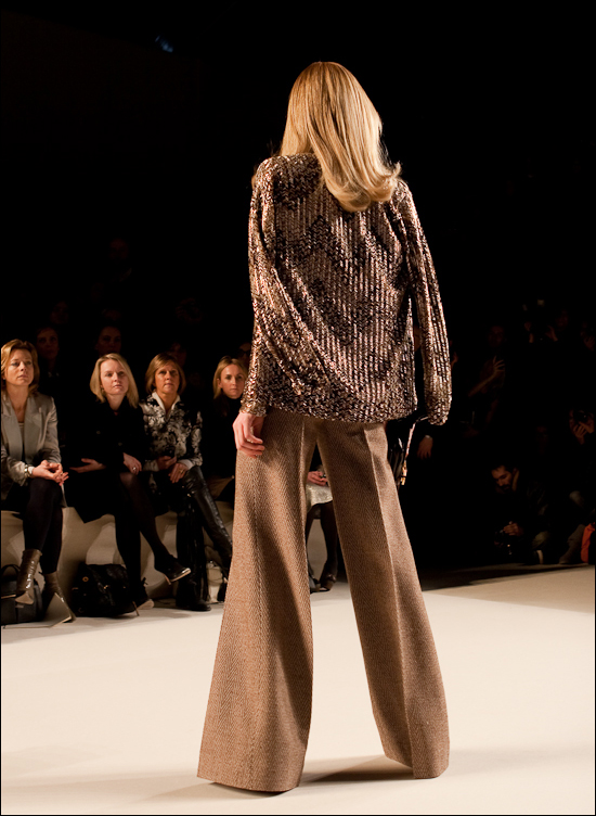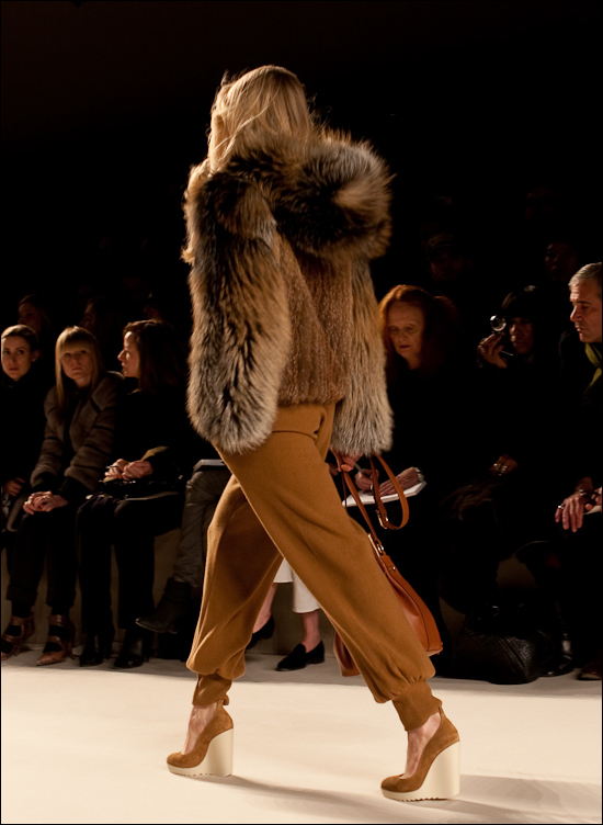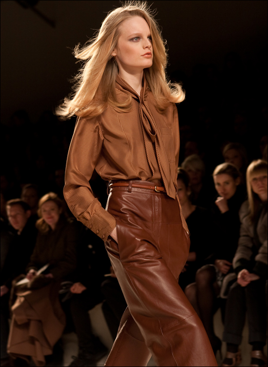 En couleur beige, sable ou camel, les jeunes dames de la maison de prêt-à-porter de luxe Chloé, dans une version ré-actualisée de Cheryl Ladd de feu Drôles de dames, s’élancent sur le podium.