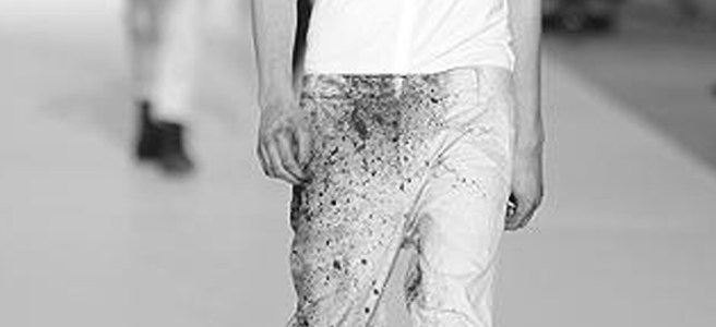 Les aléas du métier… les taches sur les vêtements que l’on retrouve à la fin du défilé de Kris Van Assche.