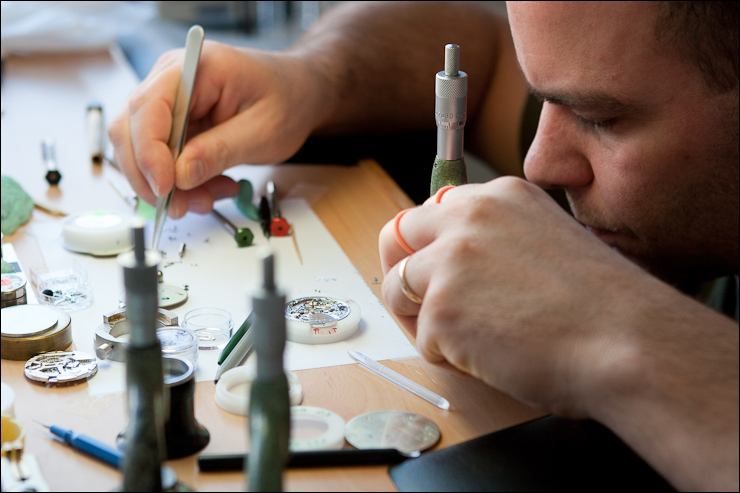 Nous avions rendez-vous à 6:30 du matin place Vendôme… S’en fût un solide petit-déjeuner à l’aéroport, accompagné de la régulière discussion sur la meilleure série US du moment avec Livia et Thomas. Un Airbus A321 plus tard et un petit trajet en autobus et nous voilà sur le seuil d’un des plus importants ateliers de construction horlogère.