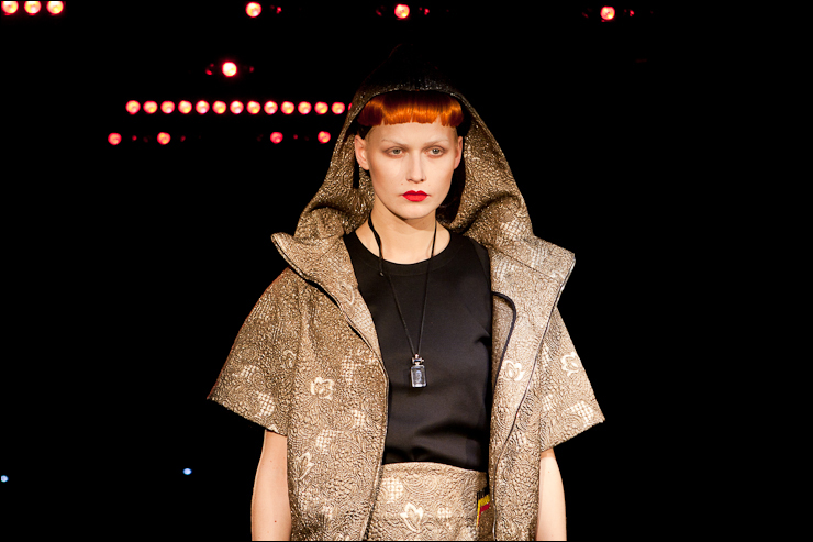 La présentation de cette saison faite preuve d’une maturité ascendante, aux couleurs de la Belgique (rouge, jaune et noir), les mannequins tournaient sur des petites plateformes, des carrousels prévus à cet effet. On y trouve toujours de l’humour, de la dérision et des références populaires, notions chères au créateur et si nécessaires à la fashion parfois.