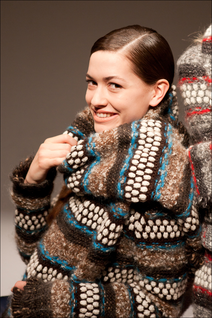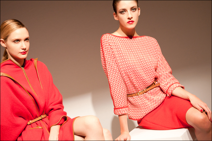 Sitting quietly behind the windows of the Palais de Tokyo, the girls dressed in knittedcotton w/silk came and posed with spare elegance.