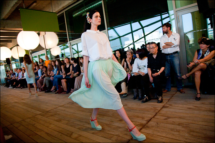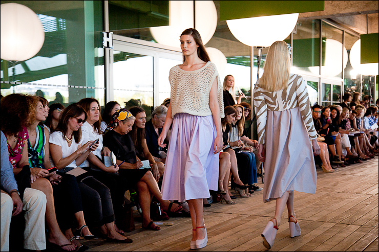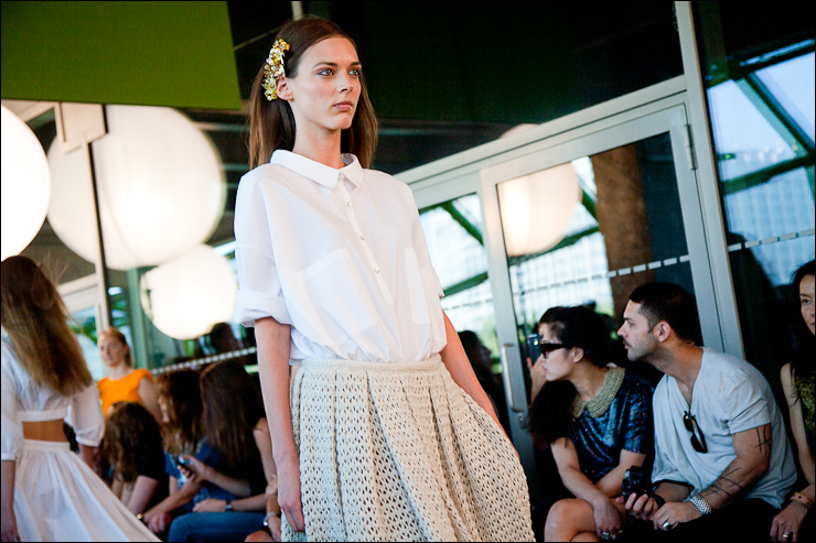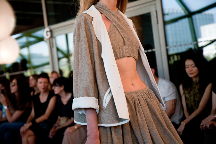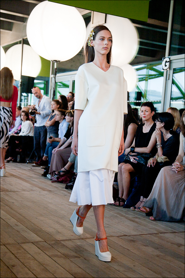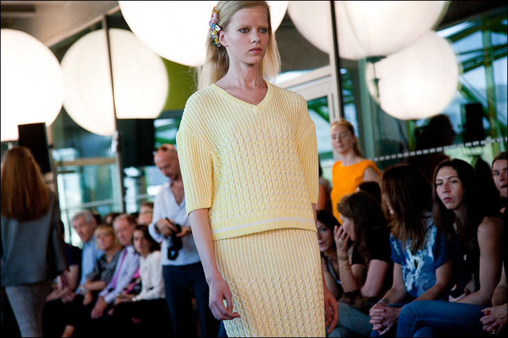 Pour l’été prochain Véronique Leroy à travaillé sur des volumes plutôt amples, jupes, robes et vestes s’évasent, des emmanchures très « sporty » basses et décollées du corps, des jupes « tube » à la taille non appuyée donnant l’impression de s’échapper à chaque pas. Des couleurs ficelle, très « nature », des couleurs sorbet (lilas, citron, vert amande). De grands plis plats pour donner du volume et de l’aisance. Une collection aux lignes claires et modernes.