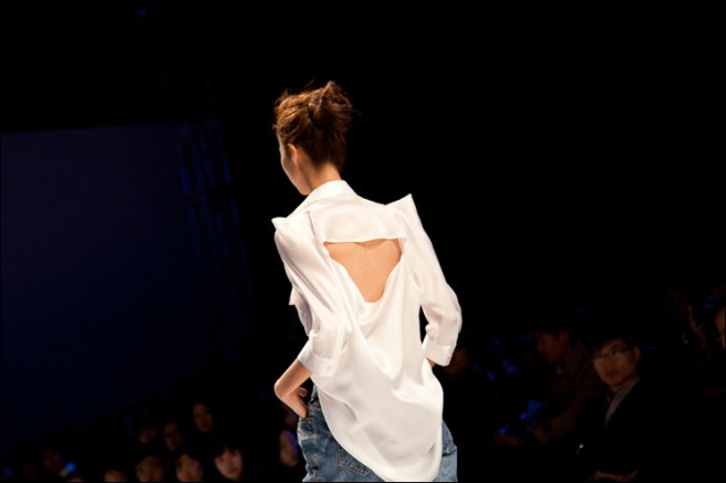 La créatrice est en pleine confiance chez elle, c’est une star et les nombreuses personnalités présentes, dont les fameuses Dal Shabet (groupe de K-Pop) en sont le témoignage. Spectaculaire, le show débute par une performance, réalisé par un danseur survitaminé qui exécute une descente de catwalk avec un déhanché pour le moins… vertigineux.
