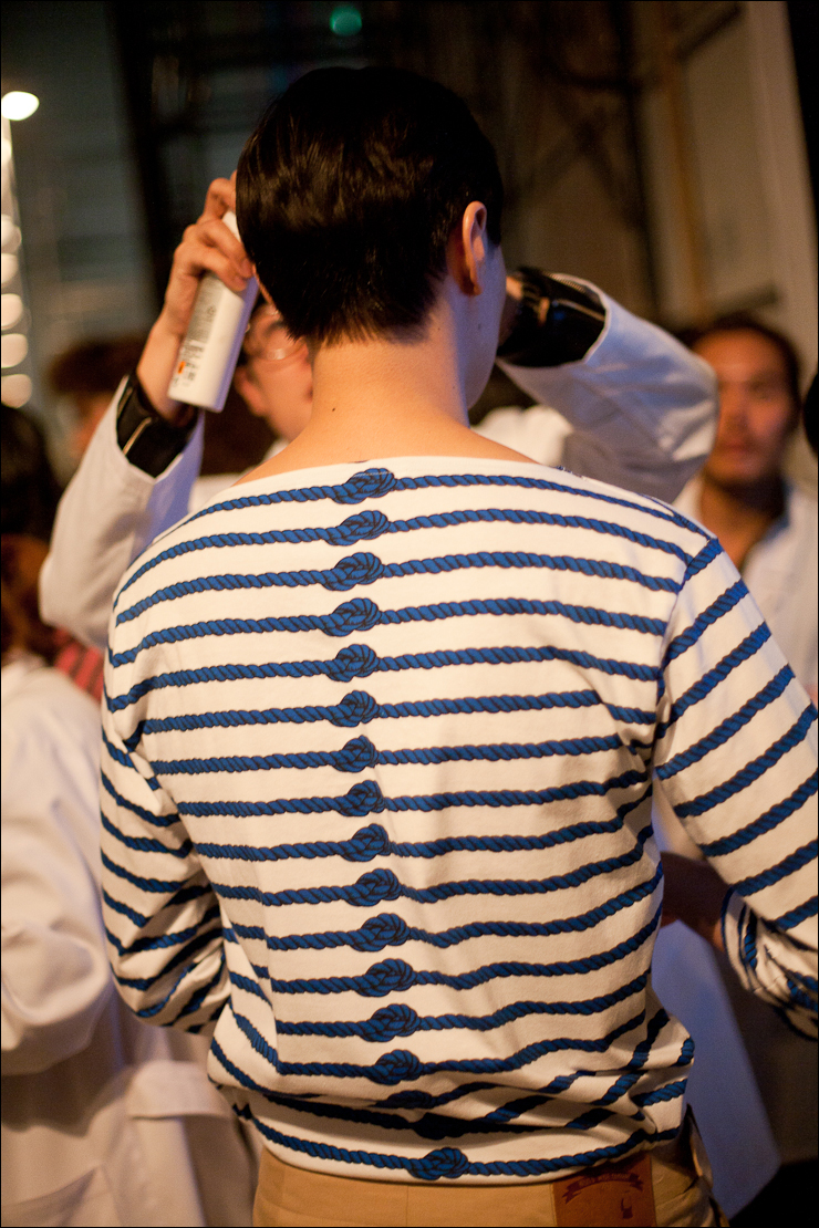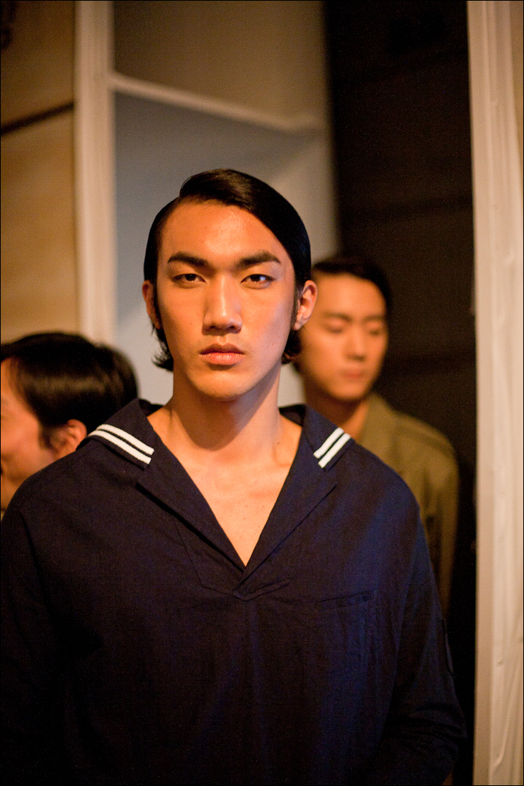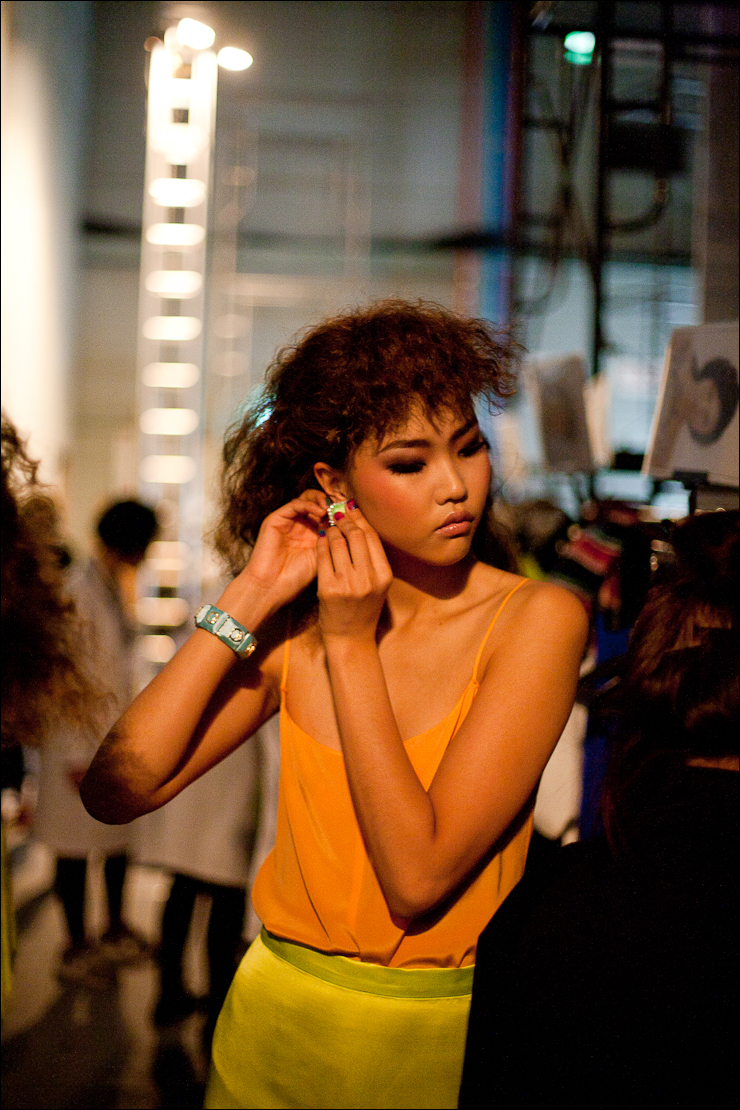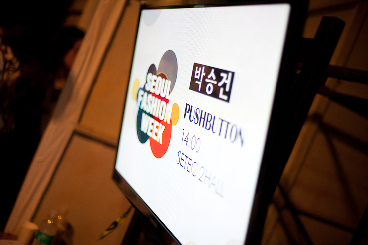 Very excited to discover the work of Seung Gun Park, designer of pushBUTTON, so i ran backstage before the show, to try to capture the essence of the show. I will post photos of the show and an interview with the designer in the next post.
