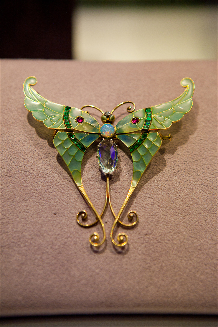 Art Nouveau enamel and multi-gem (opal, aquamarine, rubies, emeralds) butterfly, 1900, Boucheron