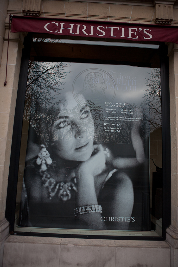Quelques photos prises lors de l’avant-première de l’exposition de bijoux d’Elizabeth Taylor chez Christie’s.