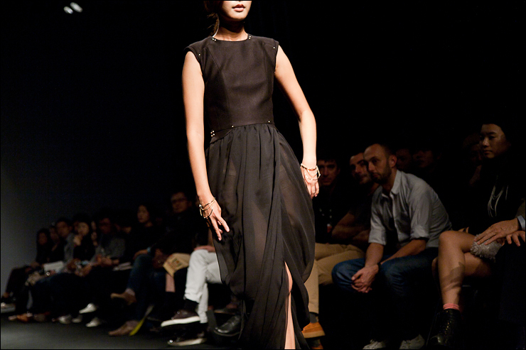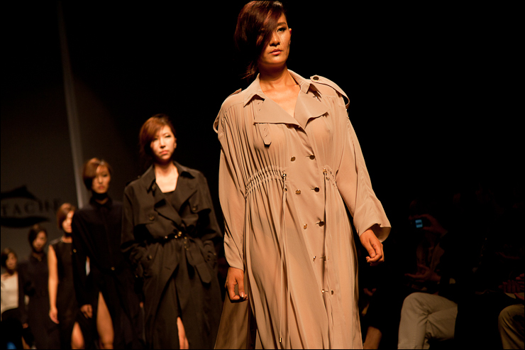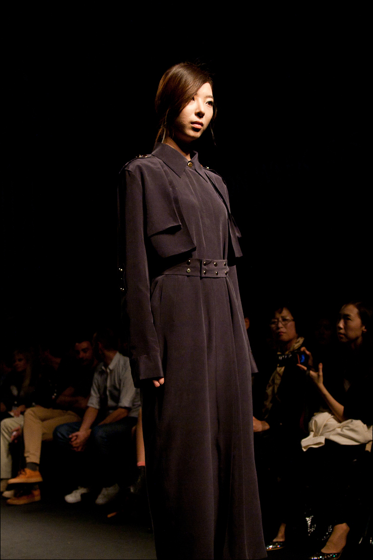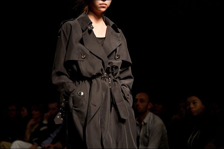 Dark and noisy music on the runway, in contrast, walking in line, girls were wearing fluid and transparent clothes. Using mainly silk this season, the duo were also inspired by the trench coat.