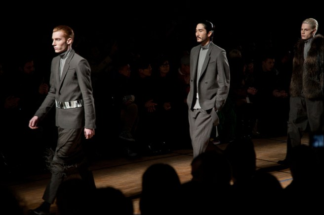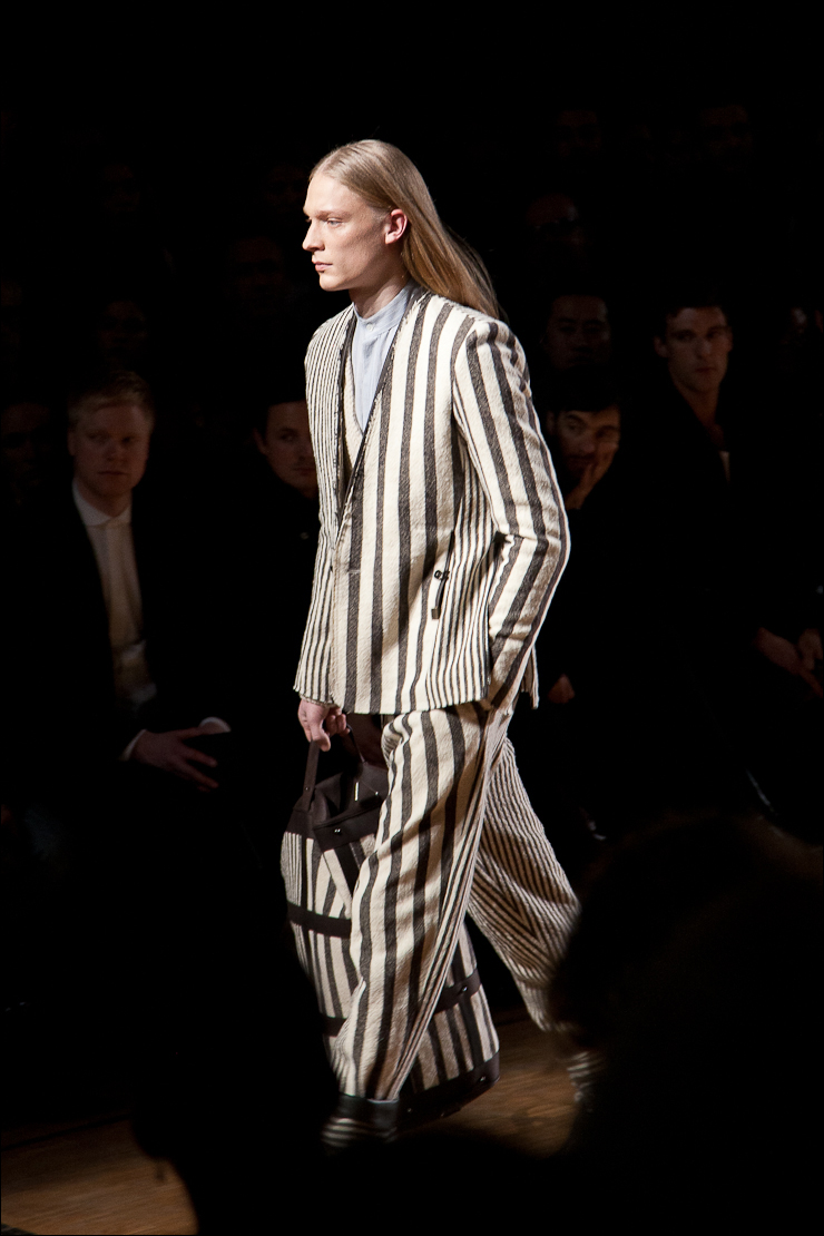 Une fois la surprise passée (la moitié de la collection) on retrouvait alors le style plus connu du créateur croate, privilégiant les nuances de gris et le travail sur de nouvelles proportions masculines.