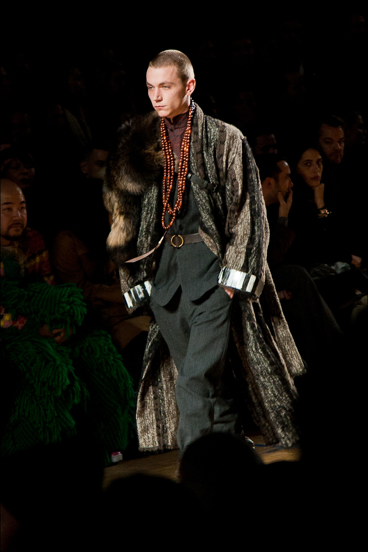De Damir Doma on est plutôt habité à voir défiler ses moines urbains, silhouettes minimalistes aux proportions confortables. C’est avec surprise que l’on a pu voir il y a quelques jours, ces « hommes des steppes », portants fourrures et imprimés afro-inspired surgir sur le podium.