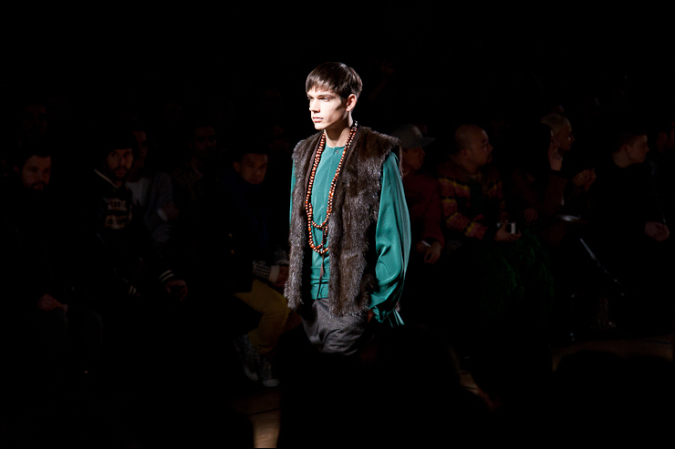 The silhouettes of Damir Doma are rather known for their minimalism and comfortable proportions. It was certainly a surprise when we seen a few days ago, these men wearing fur and african-inspired prints on the podium.