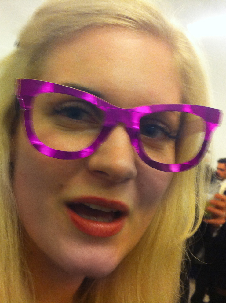 Britta Uschkamp, eponymous lingerie designer, was funny-fantastic during Les anges de la mode party. I love her « paper-à-porter » glasses from Pappbrille created by Berlin-base designer Cantemir Gheorgiu.