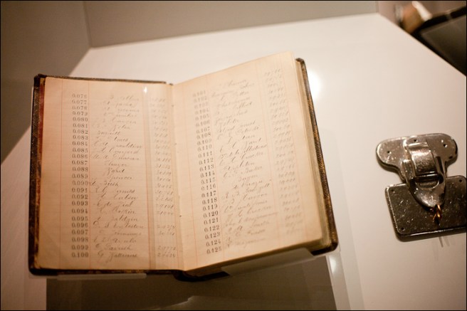 Ci dessus, un des registres dans lesquels sont tenus les numéros d’identification de toutes les serrures montées sur les bagages rigides de Louis Vuitton depuis la création de la société.