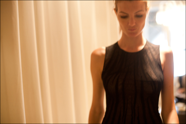 Ses réalisations témoignent de son parcours atypique, le tissu est retravaillé, plissé, brodé créant des effets matières rappelant le travail d’artisan… de luxe.