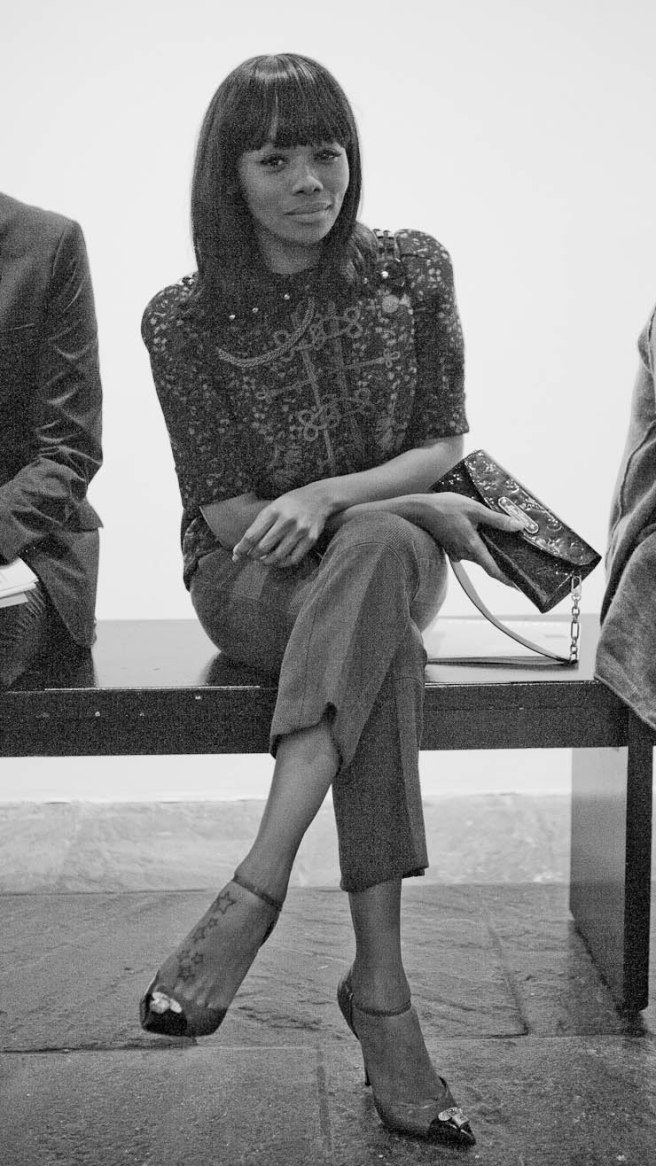 During the Yayoï Kusama opening, a young lady in total look Louis Vuitton pre-fall 2012 (twisted by the tatoos!) queuing before living the Fireflies on the water experience.