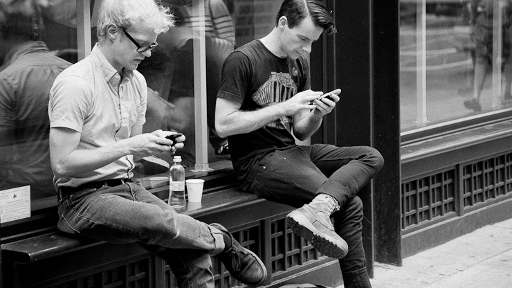 I see these guys near Ace Hotel 220 West 29th Street, New York. They seems to act in an urban ballet, mirroring the same pose.
