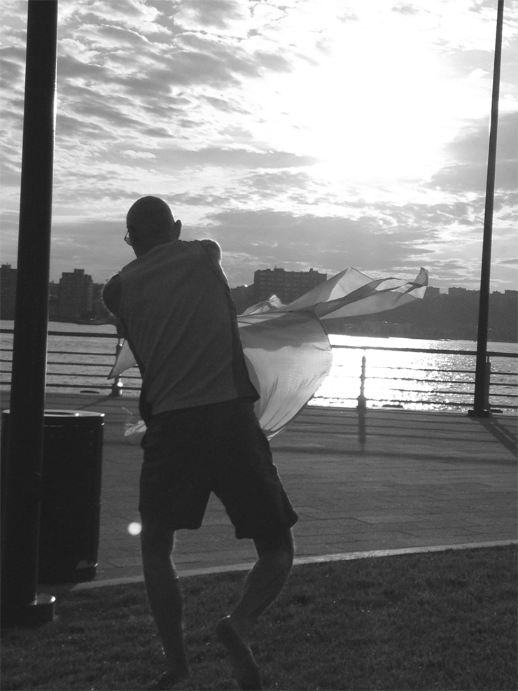 We often met too quickly during the fashion weeks in Paris. This afternoon we had a picnic with friends of her. A moment later a strange man join us and teach us the secret art of flag dancing…