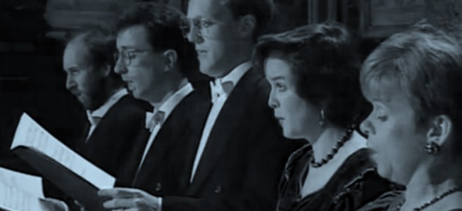The music is a 1980 recording of Gregorio Allegri’s « Miserere mei, Deus » by the famous Tallis Scholars.