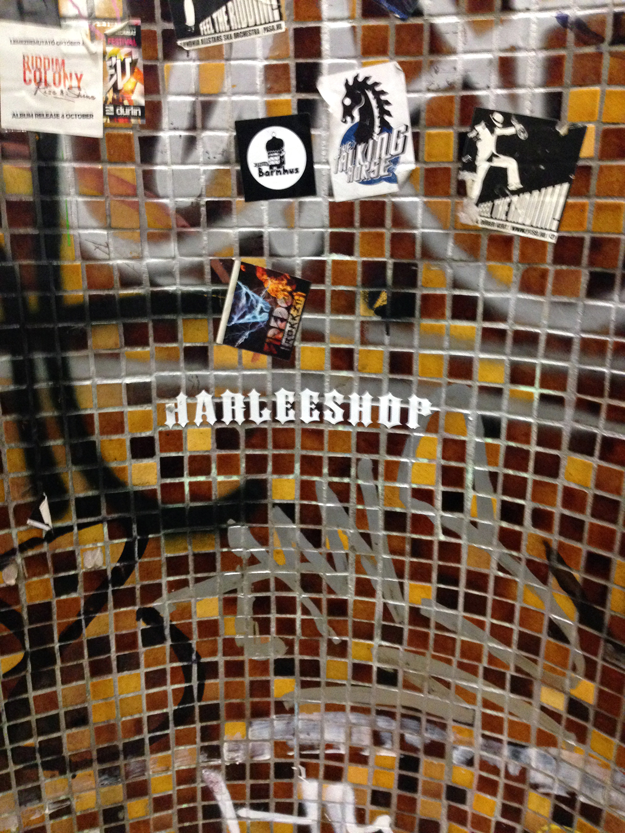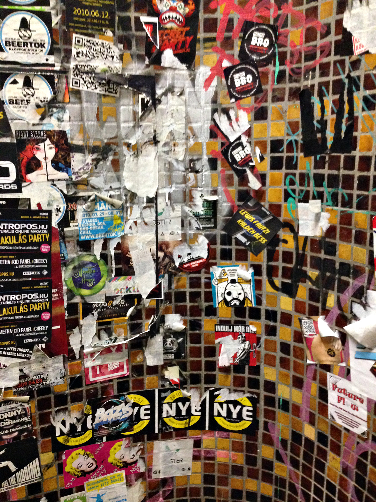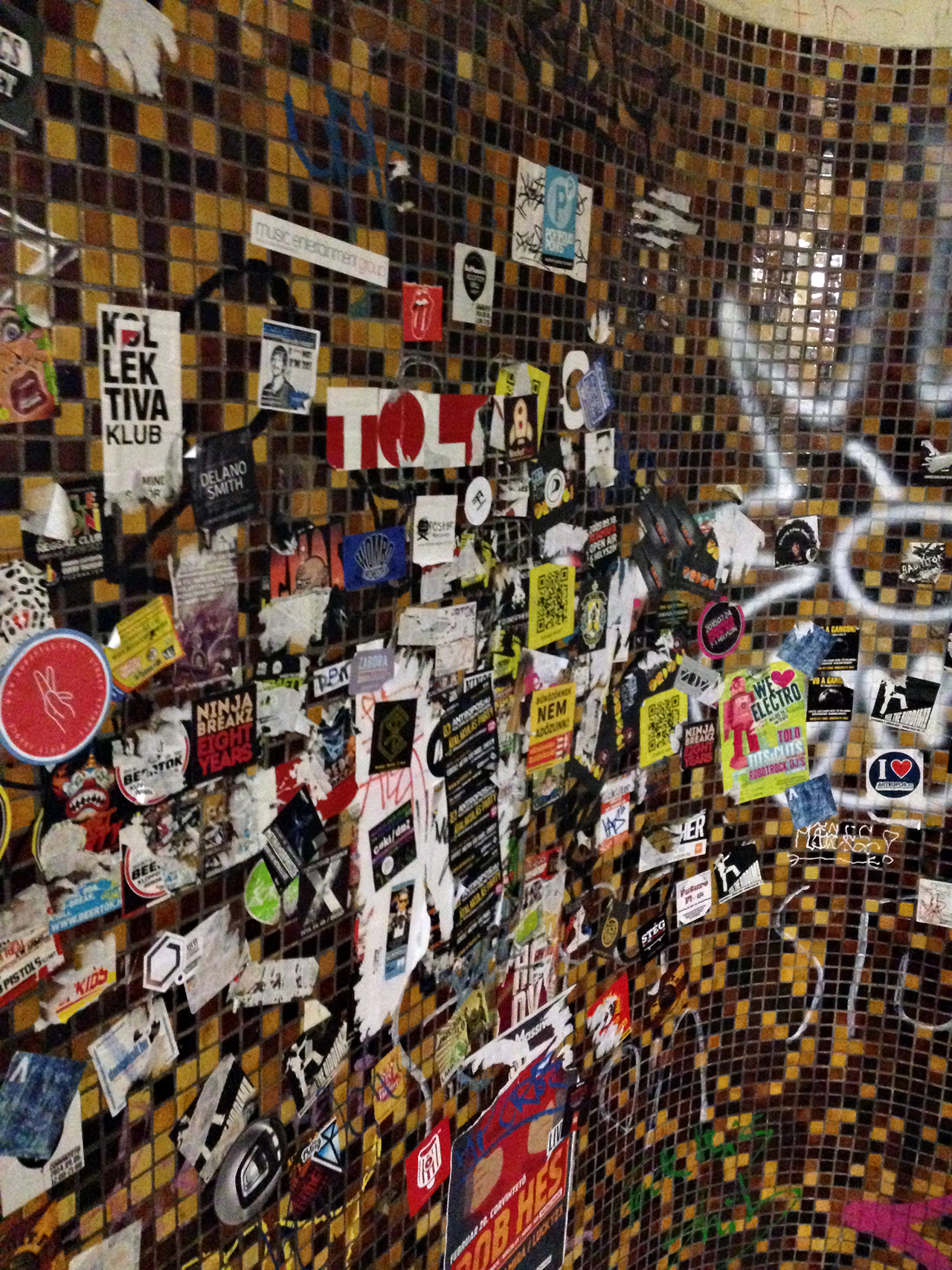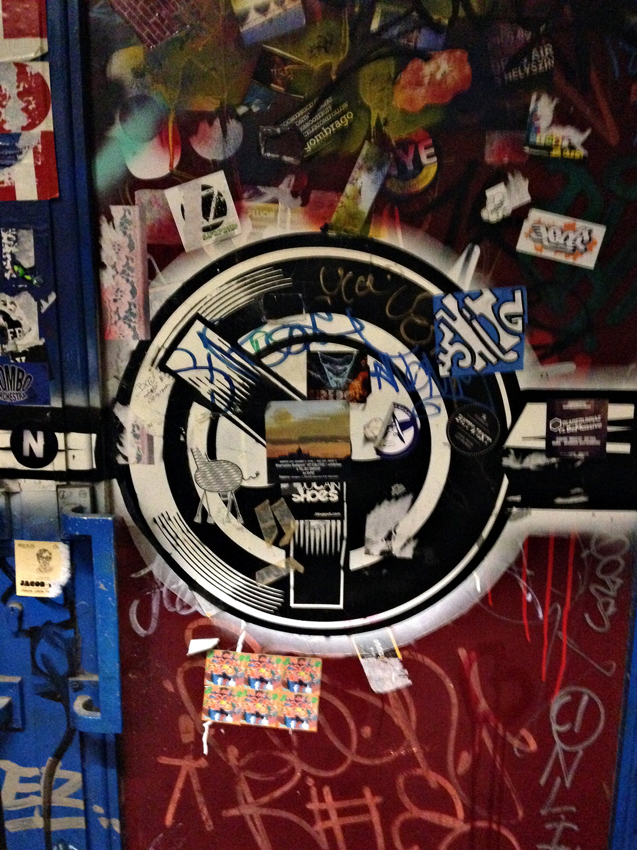 A COLLECTION OF STICKERS ON OUR WAY TO THE ROOFTOP