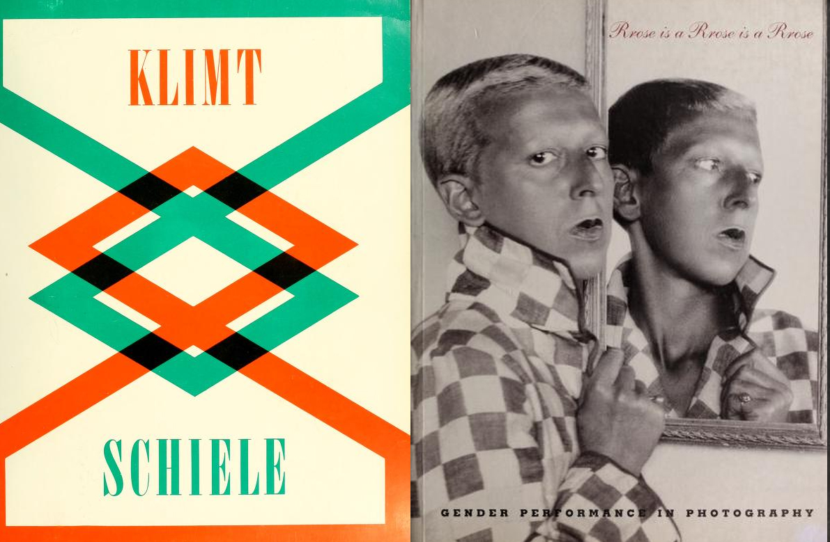 Ci-dessous « Gustav Klimt and Egon Schiele », publié en 1965 et « Rrose is a rrose is a rrose : gender performance in photography », publié en 1997