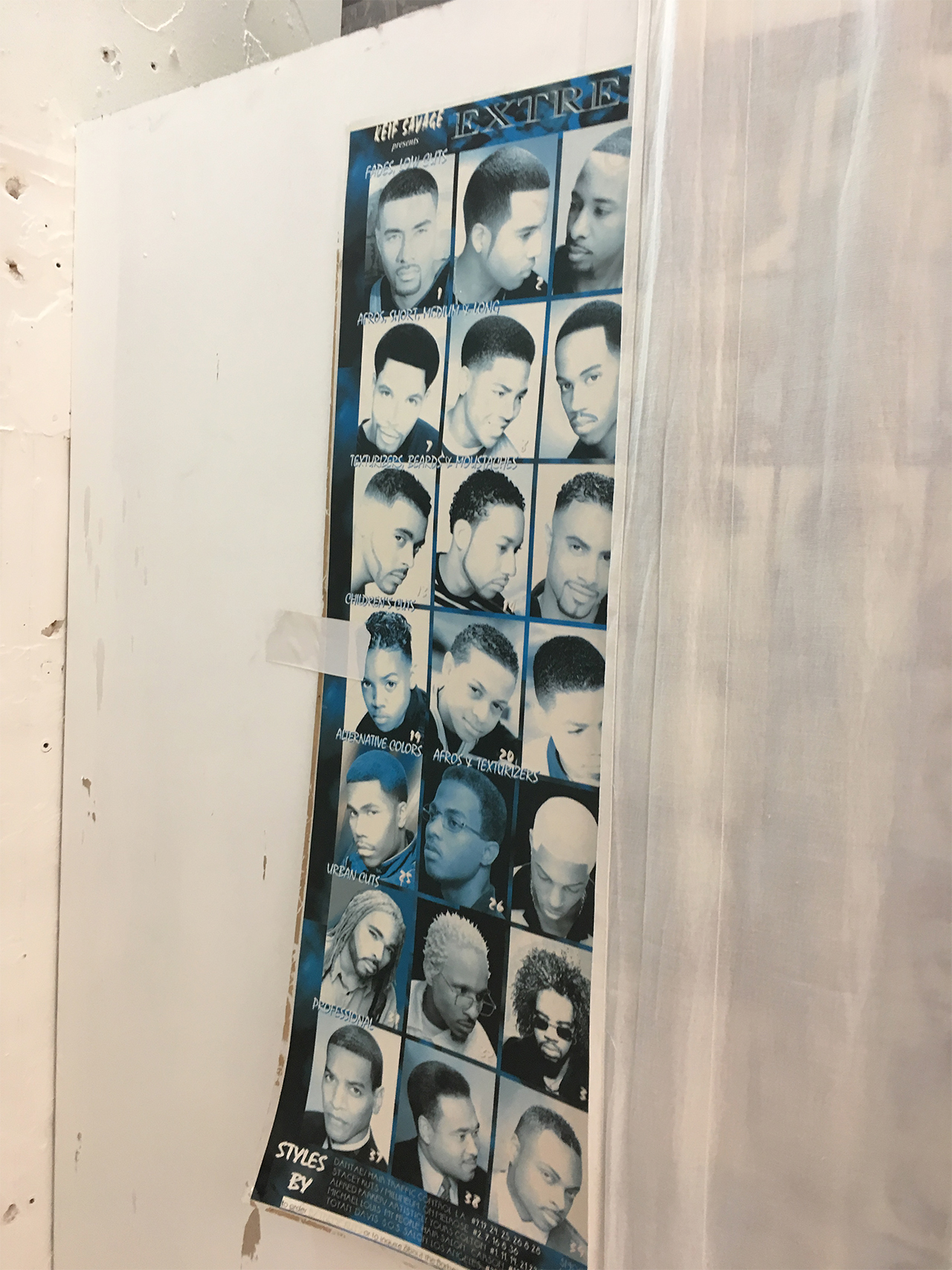 THE COMMUNITY IS LOCATED IN AN OLD HAIRDRESSING SALON AND THE POSTER BELOW GOT A GREAT STORY. THE AFROS HAIRCUTS, THE BLACK & BLUE COLORS, THE POSE, THE LOOKS, THE LIGHT, THE STYLES, EVERYTHING IS SO GREAT THAT THE FINISH COLLECTIVE DECIDED TO PRINT IT WITH THE AGREEMENT OF THE EX-OWNER. THEY MADE A CARPET WITH IT… YOU CAN SEE IT IN THE BASEMENT.
