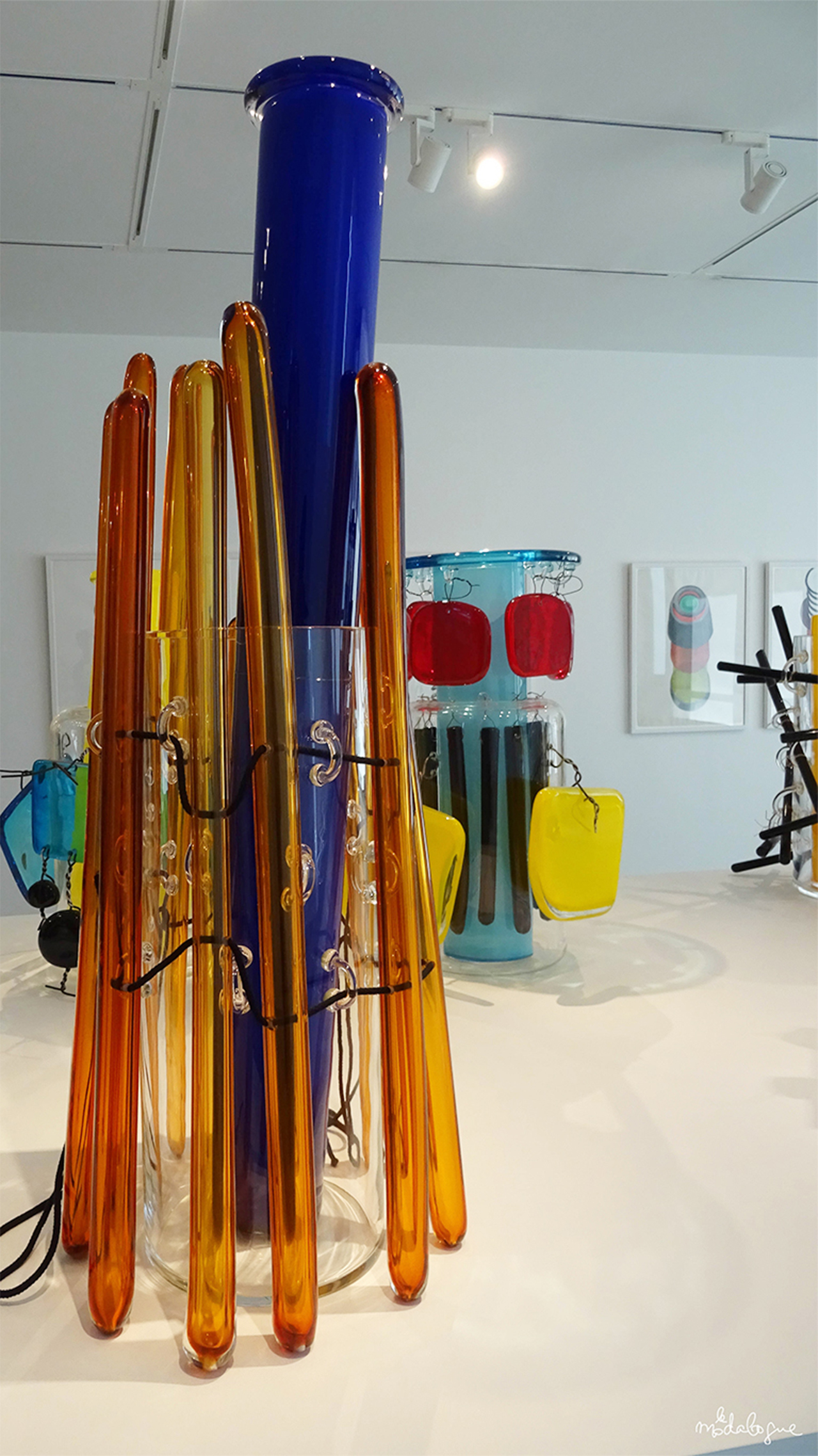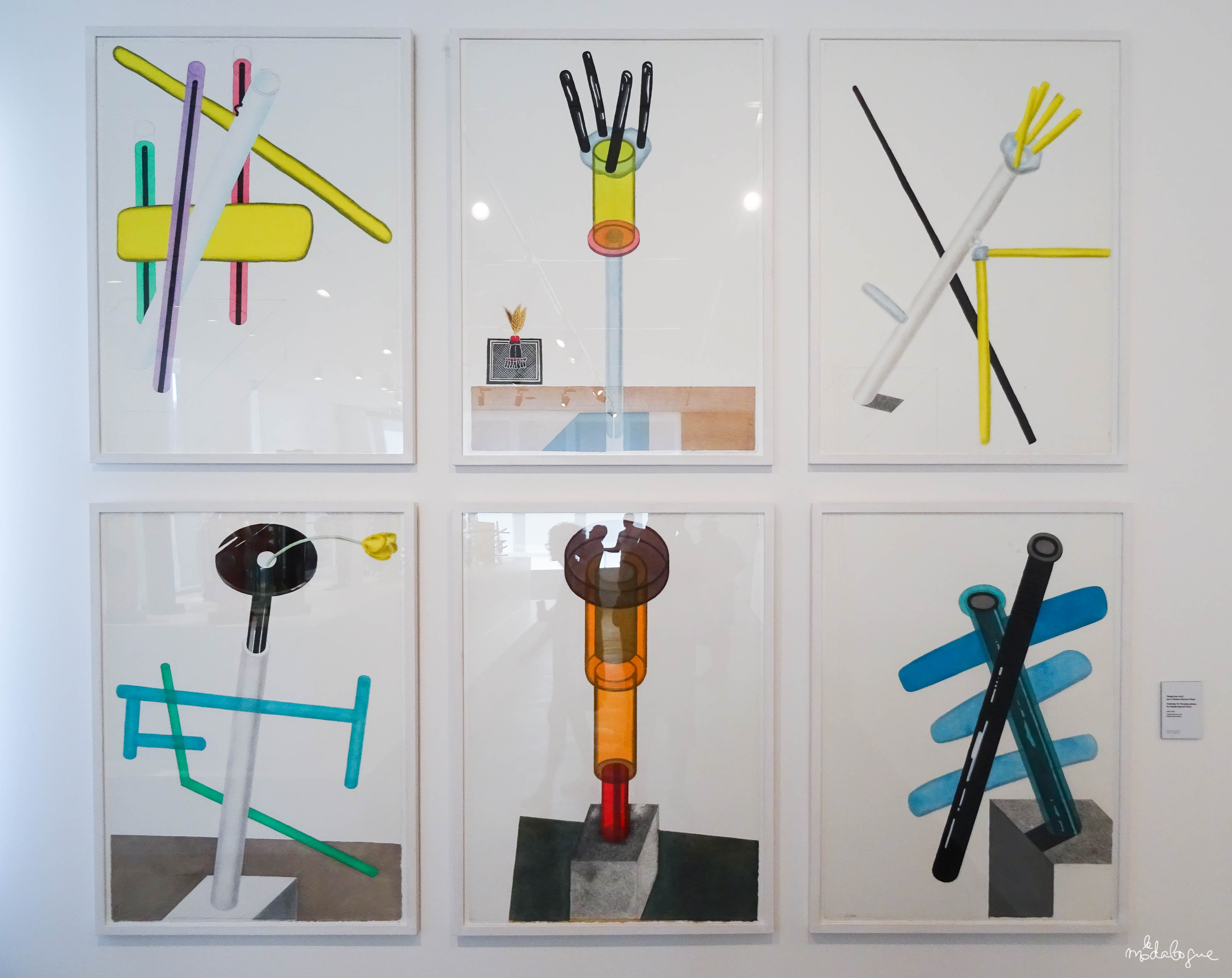 LA FIN DE L’EXPOSITION MONTRE L’IMPORTANCE DU DESSIN DANS LE PROCESS DE TRAVAIL DE L’ARTISTE. COMME DANS UN ATELIER DE COUTURE, ETTORE SOTTSASS SERAIT LE STYLISTE ET LES VERRIERS LES PETITES MAINS. COMME IL LE DISAIT LUI-MÊME, RESPECTUEUX DU SAVOIR-FAIRE DES SOUFFLEURS DE VERRE « I MADE THE DRAWINGS AND THEY MADE THE OBJECTS ».