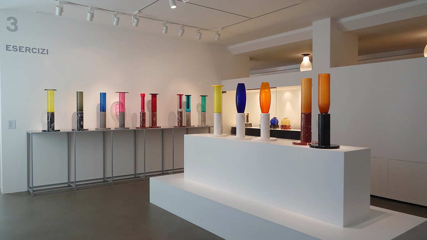 PLUS DE 220 OBJETS DE VERRE SONT EXPOSÉS POUR LA PLUPART POUR LA PREMIÈRE FOIS, SUR L’ILE SAN GIORGIO MAGGIORE À VENISE ET CE POUR FÊTER LES 100 ANS DE LA NAISSANCE DE L’ARCHITECTE-DESIGNER ETTORE SOTTSASS.