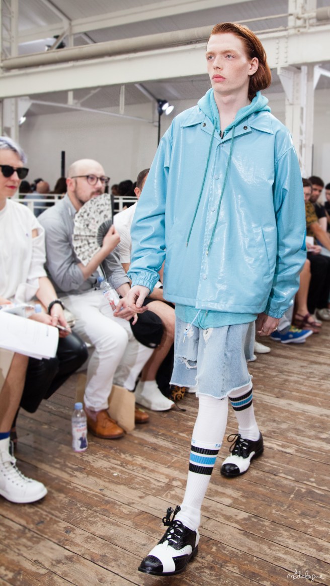 AU REGARD DES SILHOUETTES QUI DÉFILENT RUE DE LAPPE CE JOUR-LÀ ON DEVINE QUE HIROMICHI OCHIAI DOMPTE PARFAITEMENT LES CODES DE LA DISSONANCE (SELON CERTAINS) OU DE L’HYBRIDATION (DIRONT D’AUTRES). MI-BAS DE SPORT PORTÉS AVEC DES DERBYS, AMALGAME HÉTÉROCLITE OU SAVANT MÉLANGE? MOCASSINS IMPRIMÉS LÉOPARD x MI-BAS x BERMUDA-SPORT x GILET ASYMÉTRIQUE DE COSTUME… GRAND MANTEAUX-PEIGNOIRS DONT CERTAINES PARTIES ONT TENDANCE À DÉGUEULER, MOLLES DE DÉCONTRACTION.
