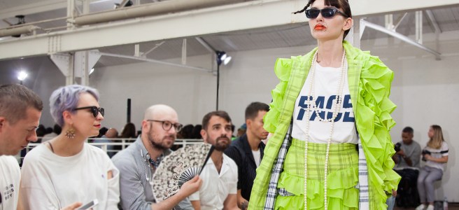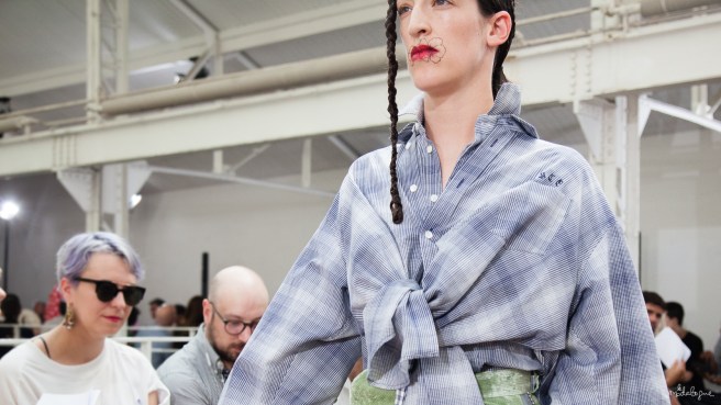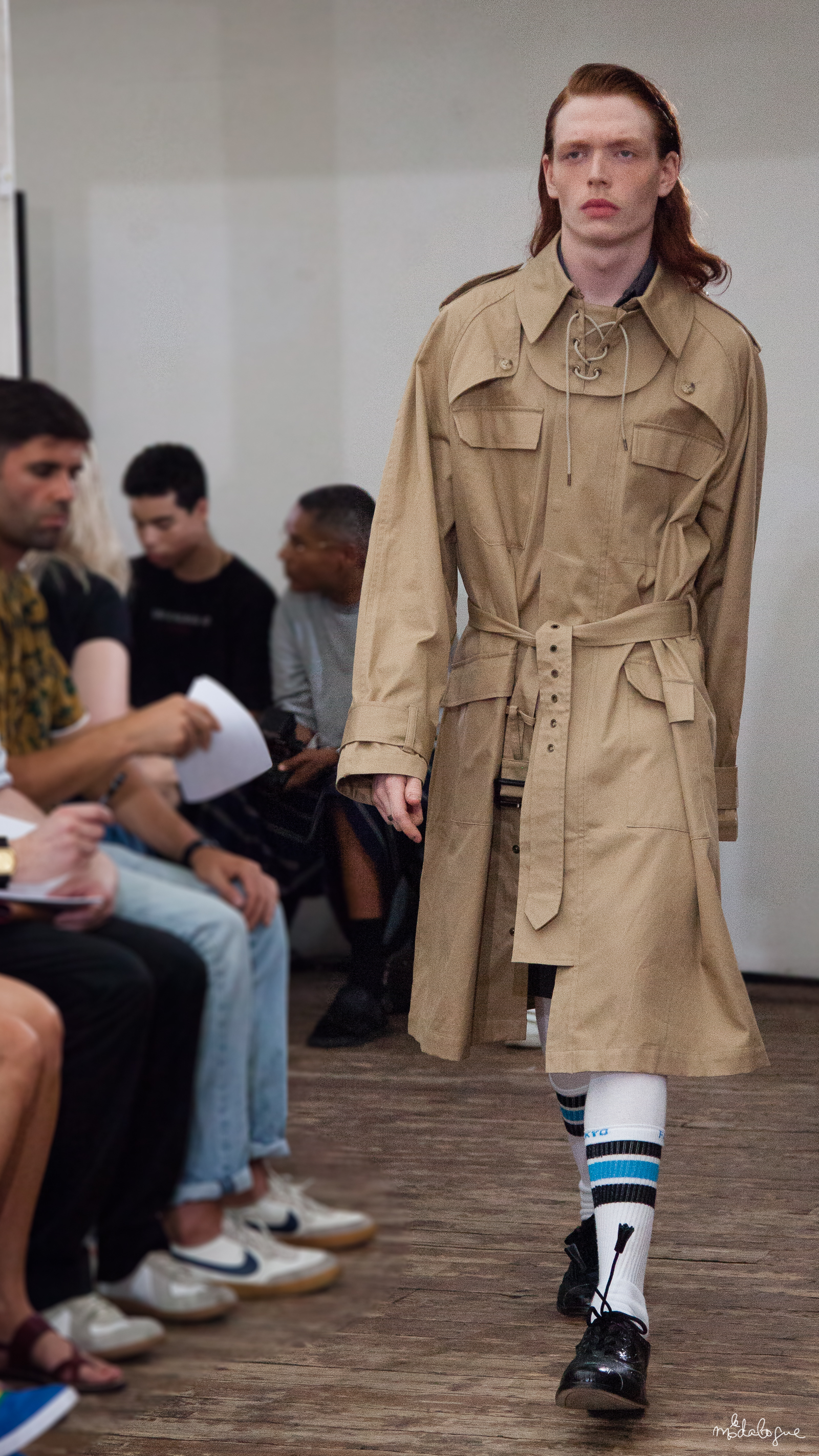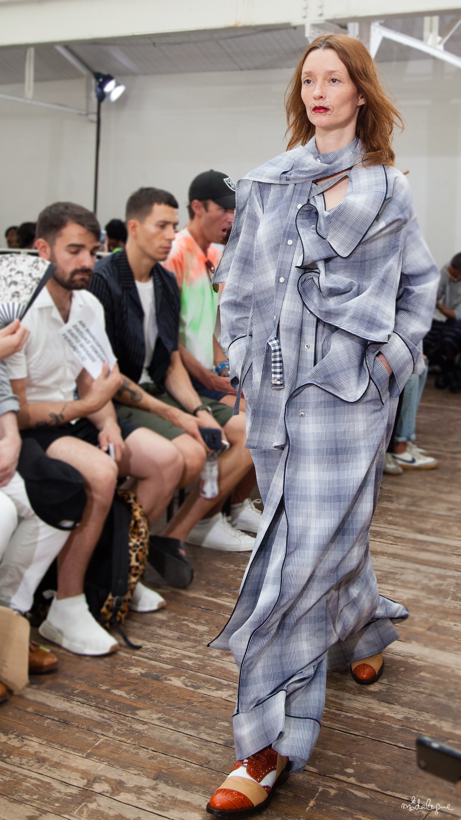 J’AI DÉCOUVERT LA MARQUE À LONDRES IL Y A QUELQUES SEMAINES CHEZ LN-CC. RENDEZ-VOUS ÉTAIT PRIS À PARIS EN CETTE FIN DE MOIS DE JUIN POUR Y VOIR L’ENTIÈRETÉ DE LA PROMESSE IMAGINÉE AU PAYS DU BREXIT.