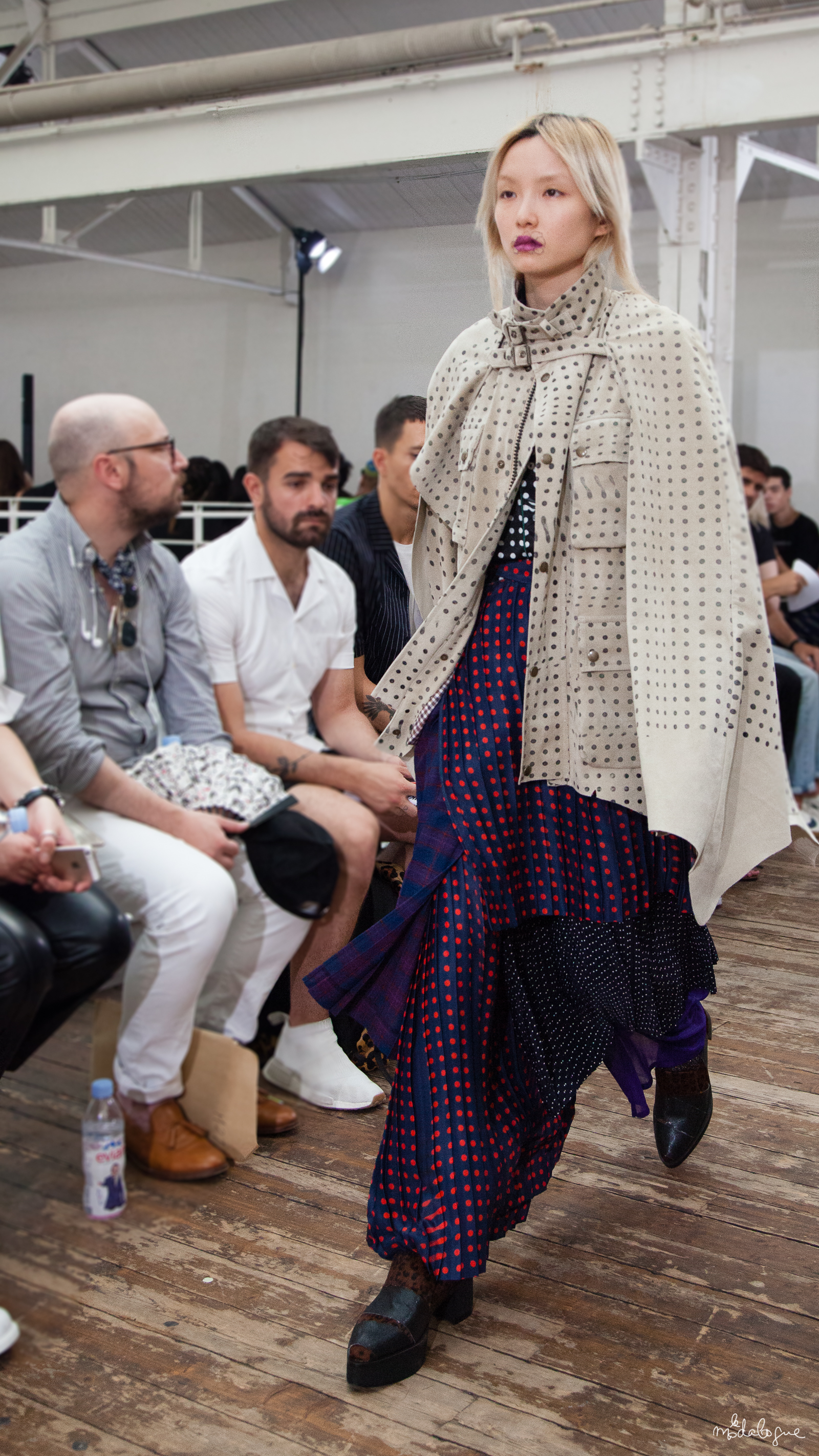 C’EST UN DÉFILÉ AUX SILHOUETTES LIQUIDES, LE VÊTEMENT Y EST SOUPLE, FLUIDE COMME NOTRE ÉPOQUE EN CHANGEMENT PERMANENT, MULTI FACETTES ET MULTI VISAGES. LES MOTIFS ET LES COULEURS SONT DYNAMIQUE ET PUISSANTS COMPLÈTEMENT POP.