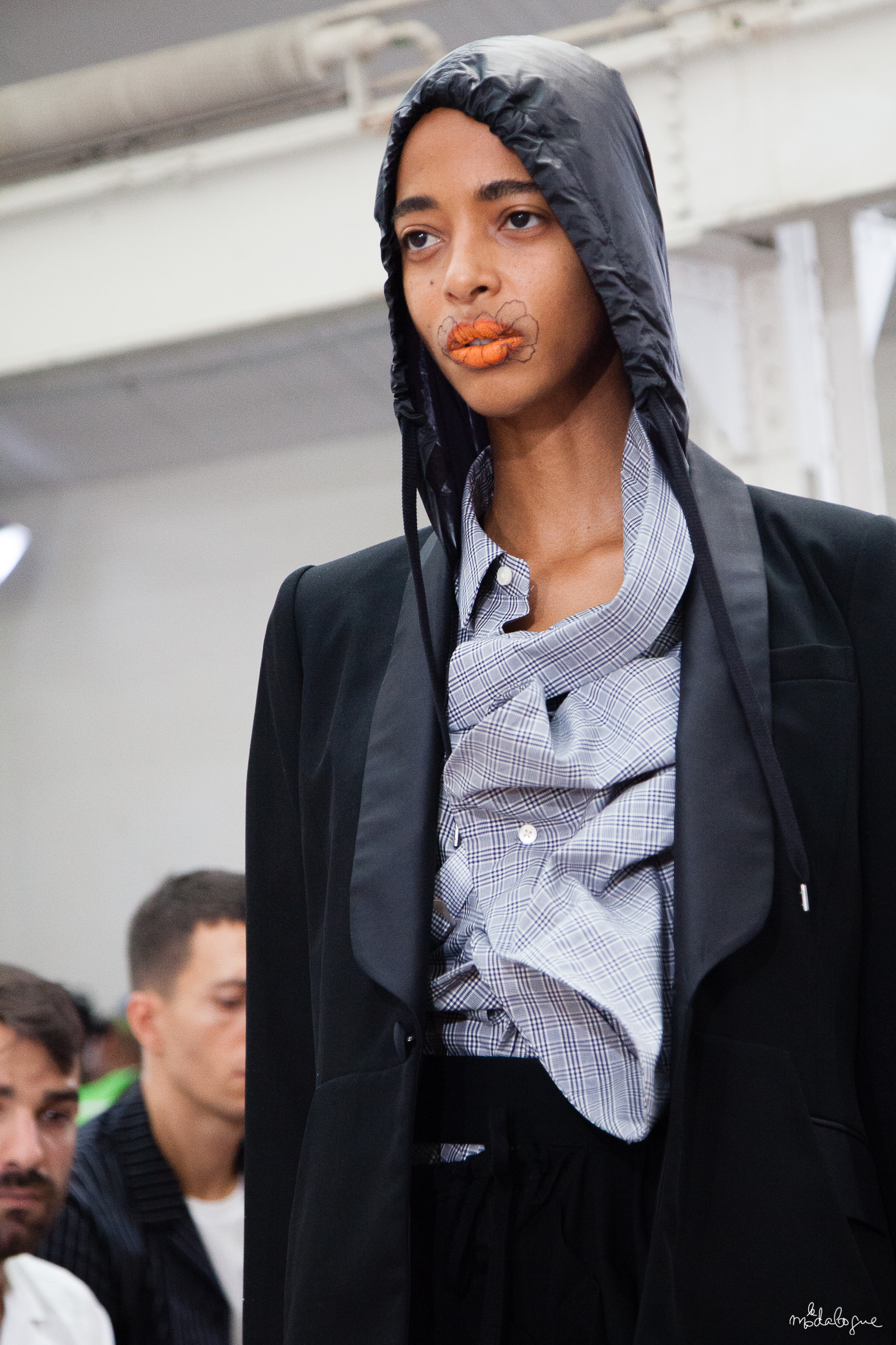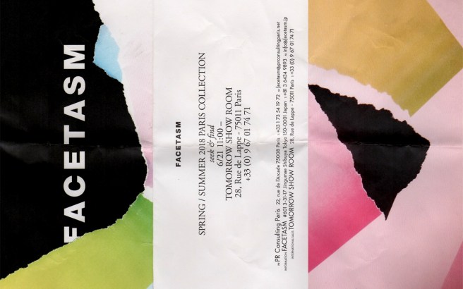 LES PROPOSITIONS STYLISTIQUES DE FACETASM NE SONT PAS RÉVOLUTIONNAIRES MAIS ELLES SONT PARFAITEMENT MAITRISÉES ET REFLÈTENT JUSTEMENT LES MUTATIONS ESTHÉTIQUES DE NOTRE QUOTIDIEN. C’EST QUE LE CRÉATEUR JAPONAIS HIROMICHI OCHIAI OFFICIE DEPUIS PLUS DE DIX ANS AU JAPON EN TANT QUE CRÉATEUR DE FACETASM ET DÉFILE À PARIS DEPUIS TROIS SAISONS. ON NE SERA PAS ÉTONNÉ DE VOIR PARMI LES MANNEQUINS AUDREY MARNAY,