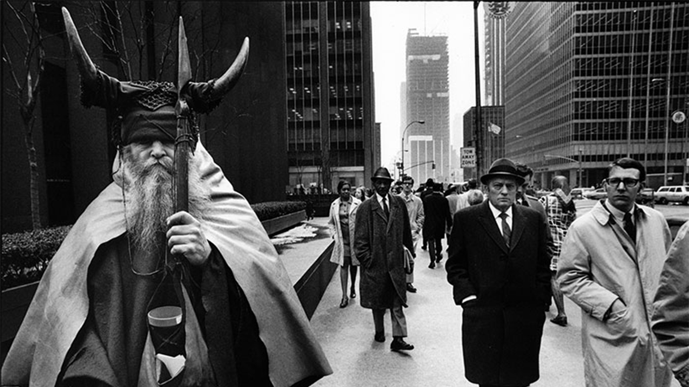 C’EST À CETTE ÉPOQUE QUE CET ANTI-ESTABLISHMENT ET ANTI-MODE COMMENCERA À NE S’HABILLER QU’AVEC DES VÊTEMENTS CONFECTIONNÉS PAR SES SOINS. EN CETTE ANNÉE 1947 IL SE FERA DÉSORMAIS APPELER MOONDOG.