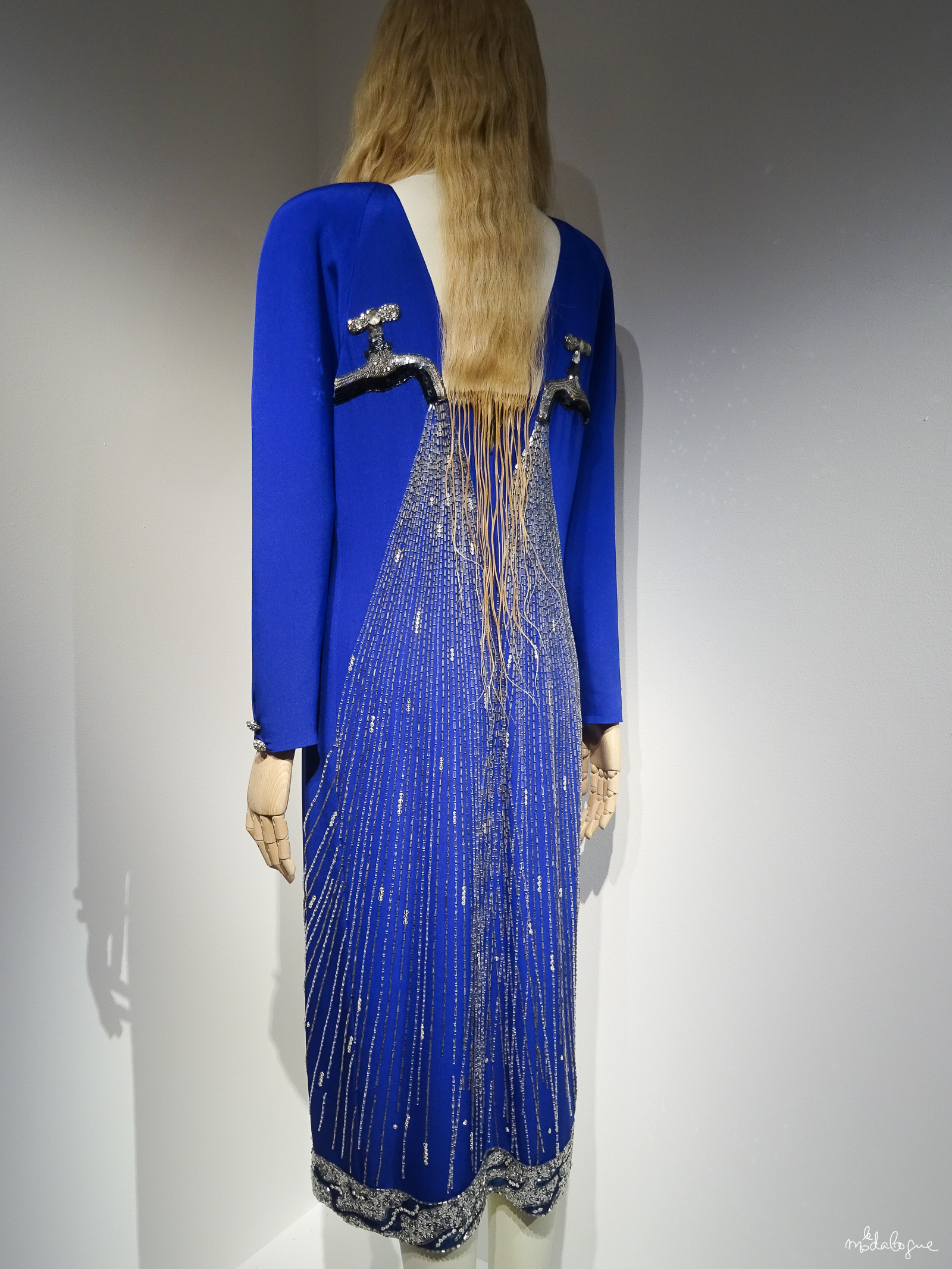 EN ACCORD AVEC LES GOÛTS LITTÉRAIRES DE GABY AGHION, ELLE AFFECTIONNAIT LE MOUVEMENT DADA ET LES ÉCRITS DE TRISTAN TZARA. ON DÉCOUVRIRA LES ROBES SURRÉALISTES « BATH » OU « CISEAUX » MÊLANT PLOMBERIE ET MODE DE KARL LAGERFELD. DES CRÉATIONS QU’AURAIENT PU CRÉER ELSA SCHIAPARELLI.