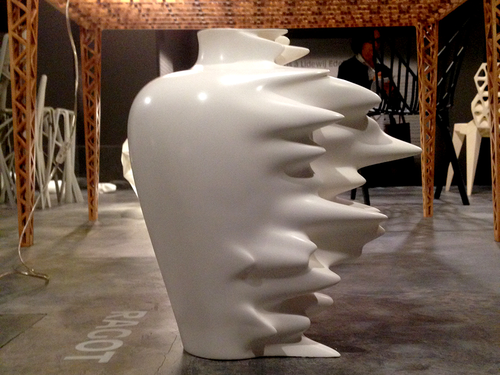 VU LORS DE L’EXPOSITION ORACLE DU DESIGN À LA GAÎTÉ LYRIQUE, LES VASES FAST DU DESIGNER FRANÇAIS CÉDRIC RAGOT POUR LA MARQUE ROSENTHAL. CRÉÉS EN 2003 ILS FONT ÉCHO À CETTE REPRÉSENTATION DE LA CÉLÉRITÉ EN ART ET DONT L’ERGONOMIE SEMBLE ELLE AUSSI FIGÉE DANS UNE ACCÉLÉRATION NUMÉRIQUE.