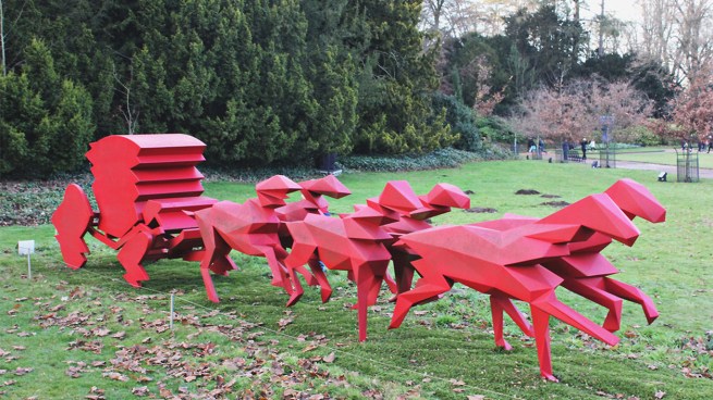 EN 2009 L’ARTISTE FRANÇAIS XAVIER VEILHAN EXPOSAIT DANS LES ALLÉES DU PALAIS DE VERSAILLES UNE SCULPTURE MONUMENTALE DE 15 M DE LONG RÉALISÉE EN TÔLE D’ACIER SOUDÉ.