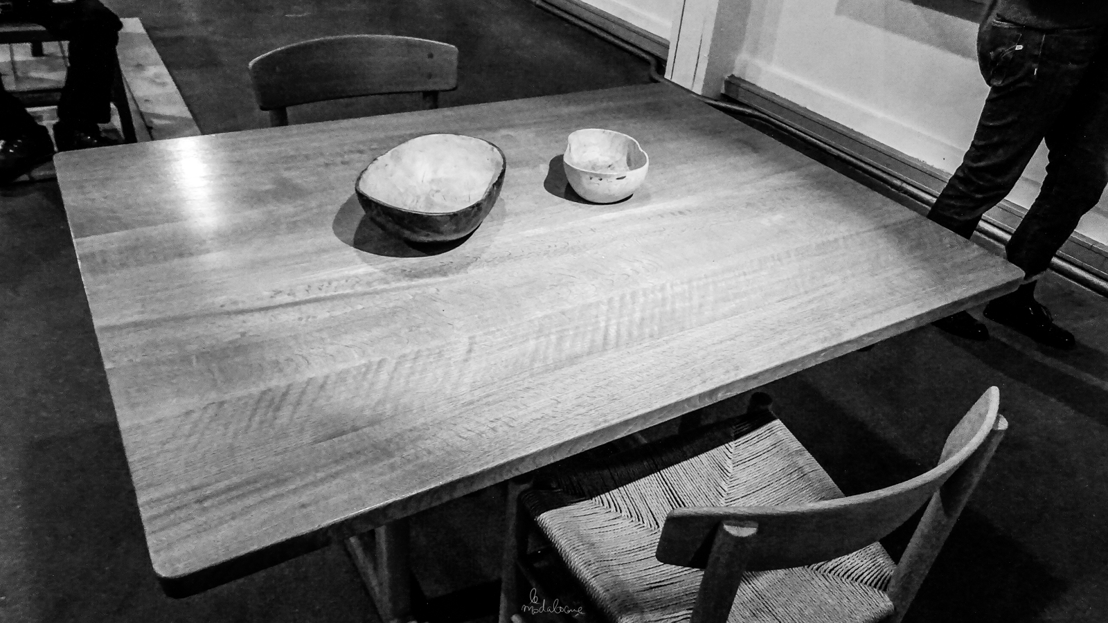 - À LA VUE DE LA PHOTO CI-DESSUS, COMMENT NE PAS PENSER À LA CHAISE DE CHARLES RENNIE MACKINTOSH (1903) RÉINTERPRÉTATION (CI-DESSOUS) DE LA LADDERBACK CHAIR