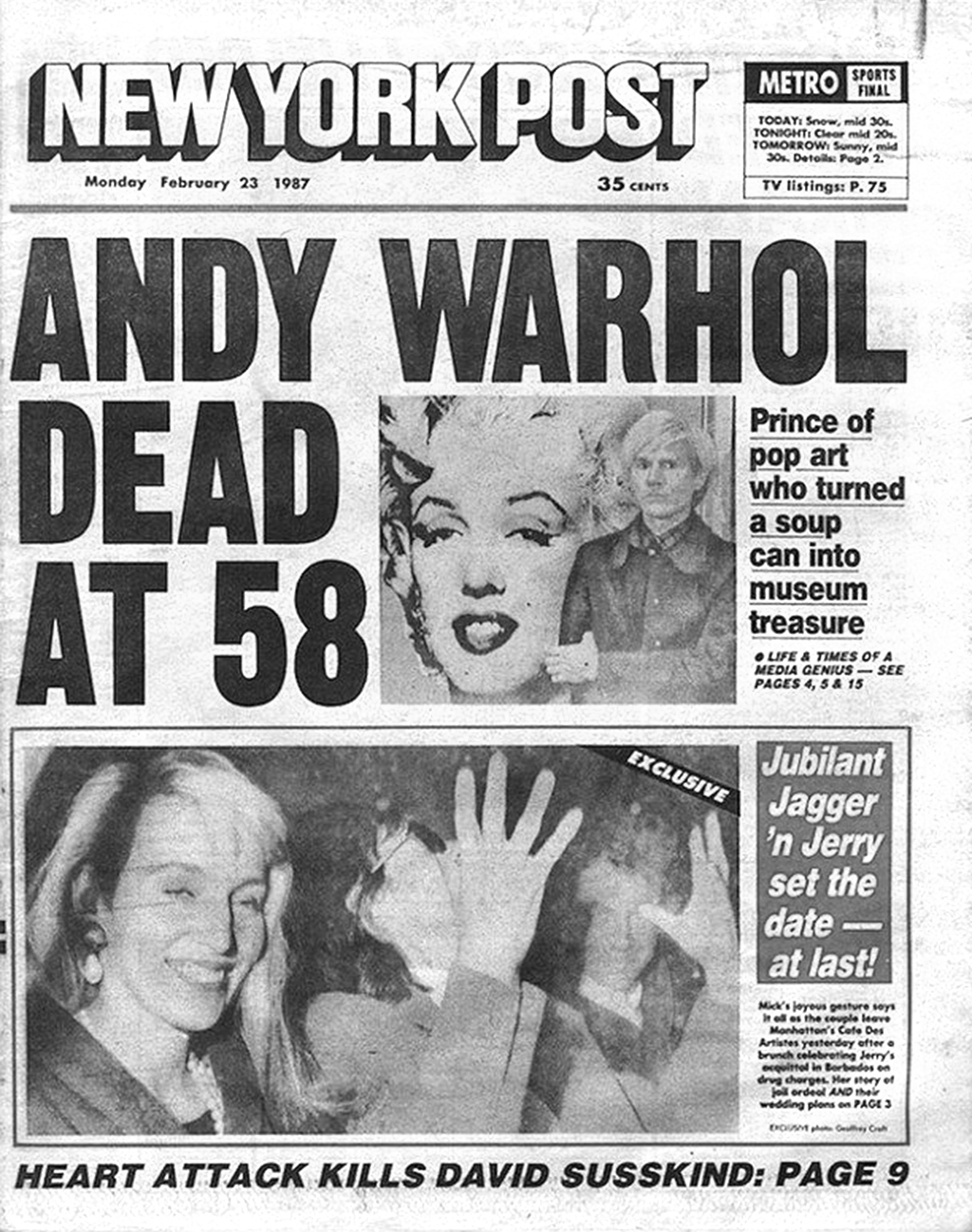A QUICK SELECTION OF NEWSPAPER COVERS OF DROP DEAD MUSIC STARS