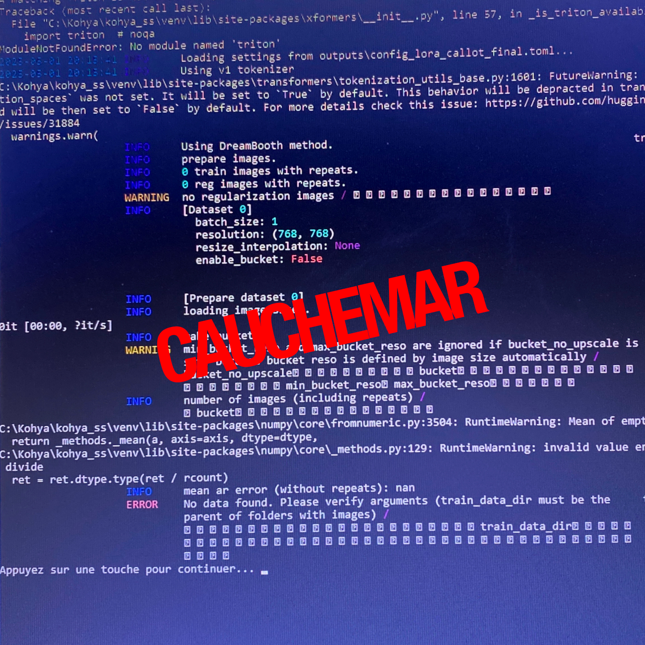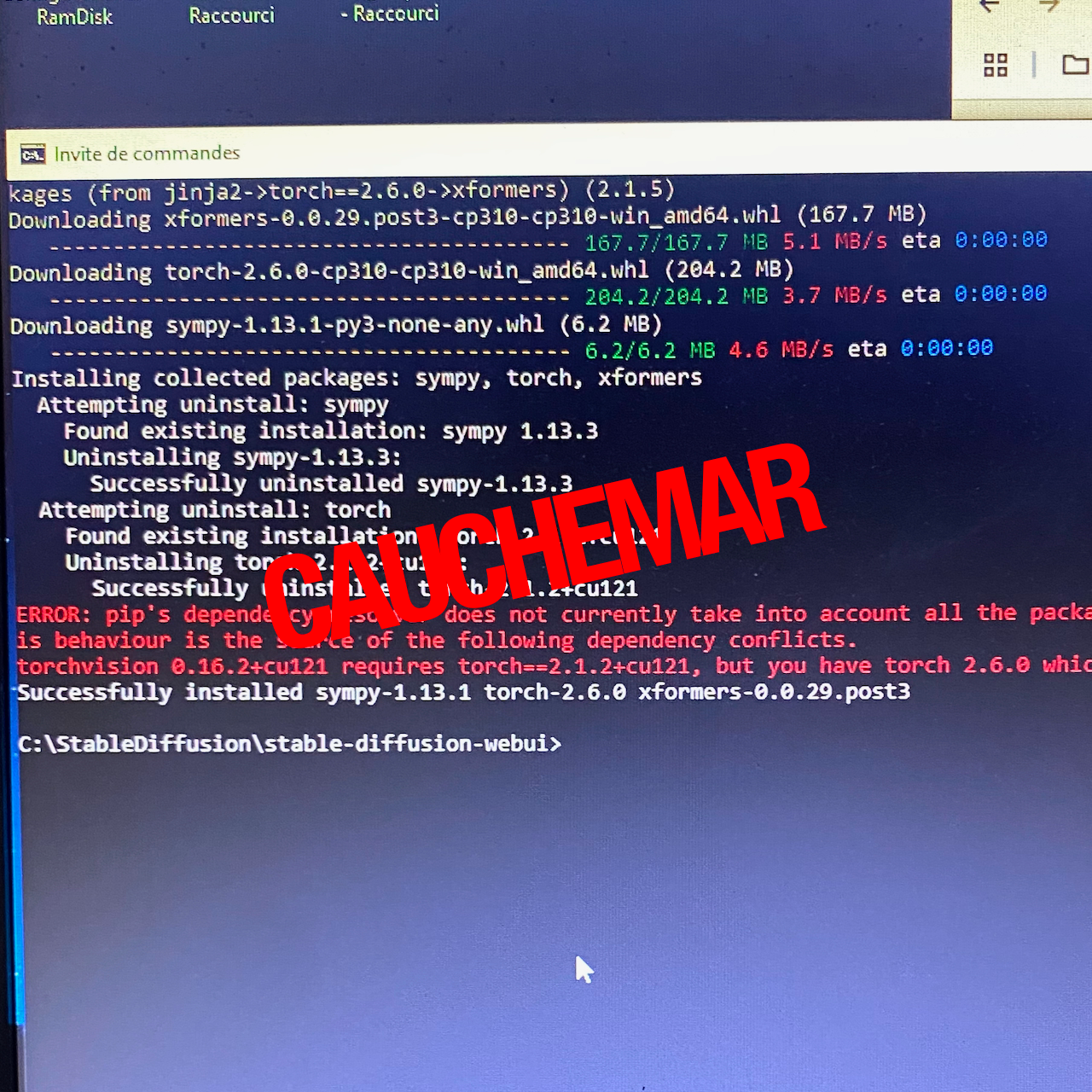 S’ensuit une période intense : nuits blanches, erreurs incompréhensibles, bugs CUDA (la techno de calcul de NVIDIA), conflits de versions, réinstallations en série, litres de thé noir…