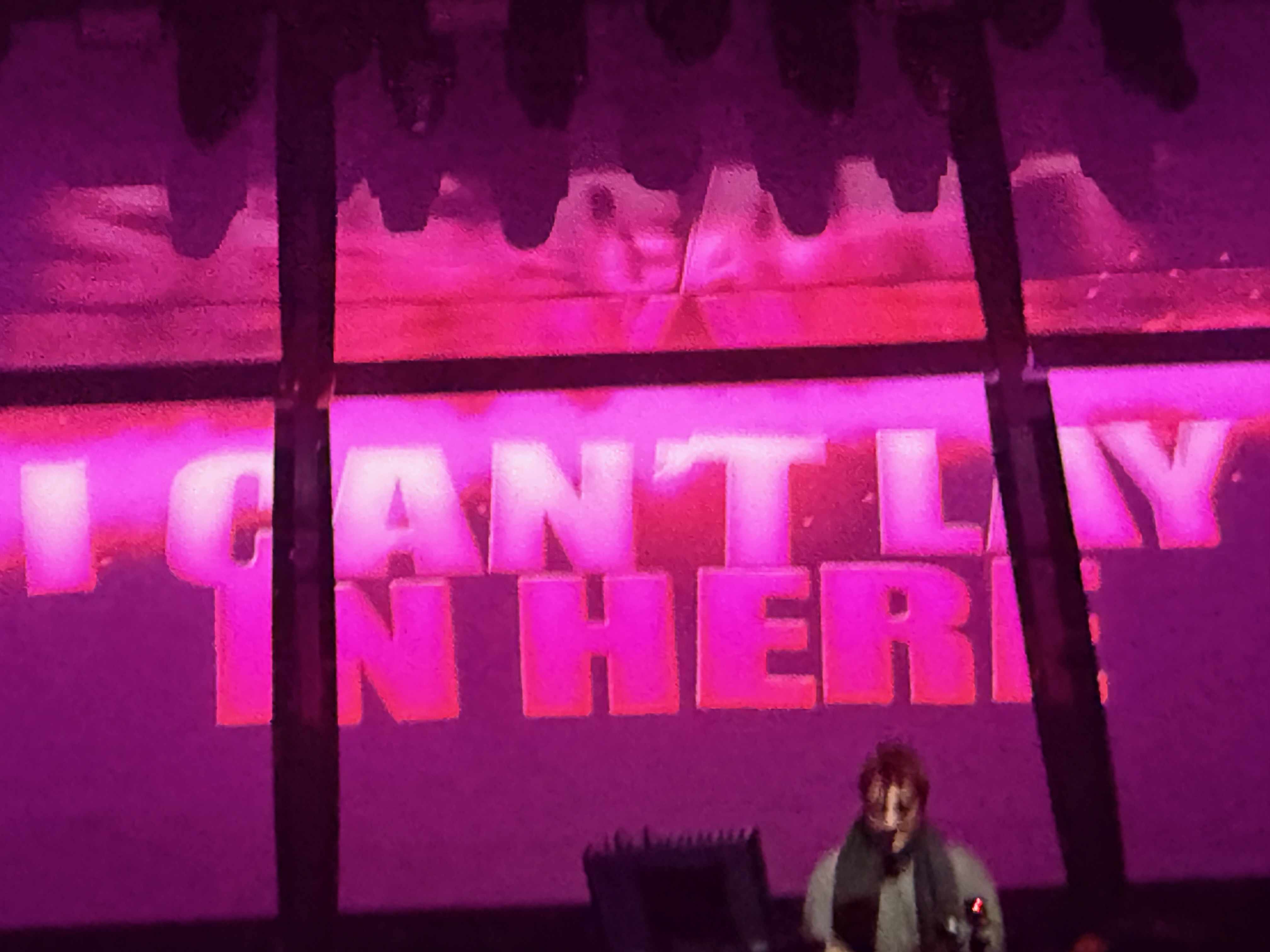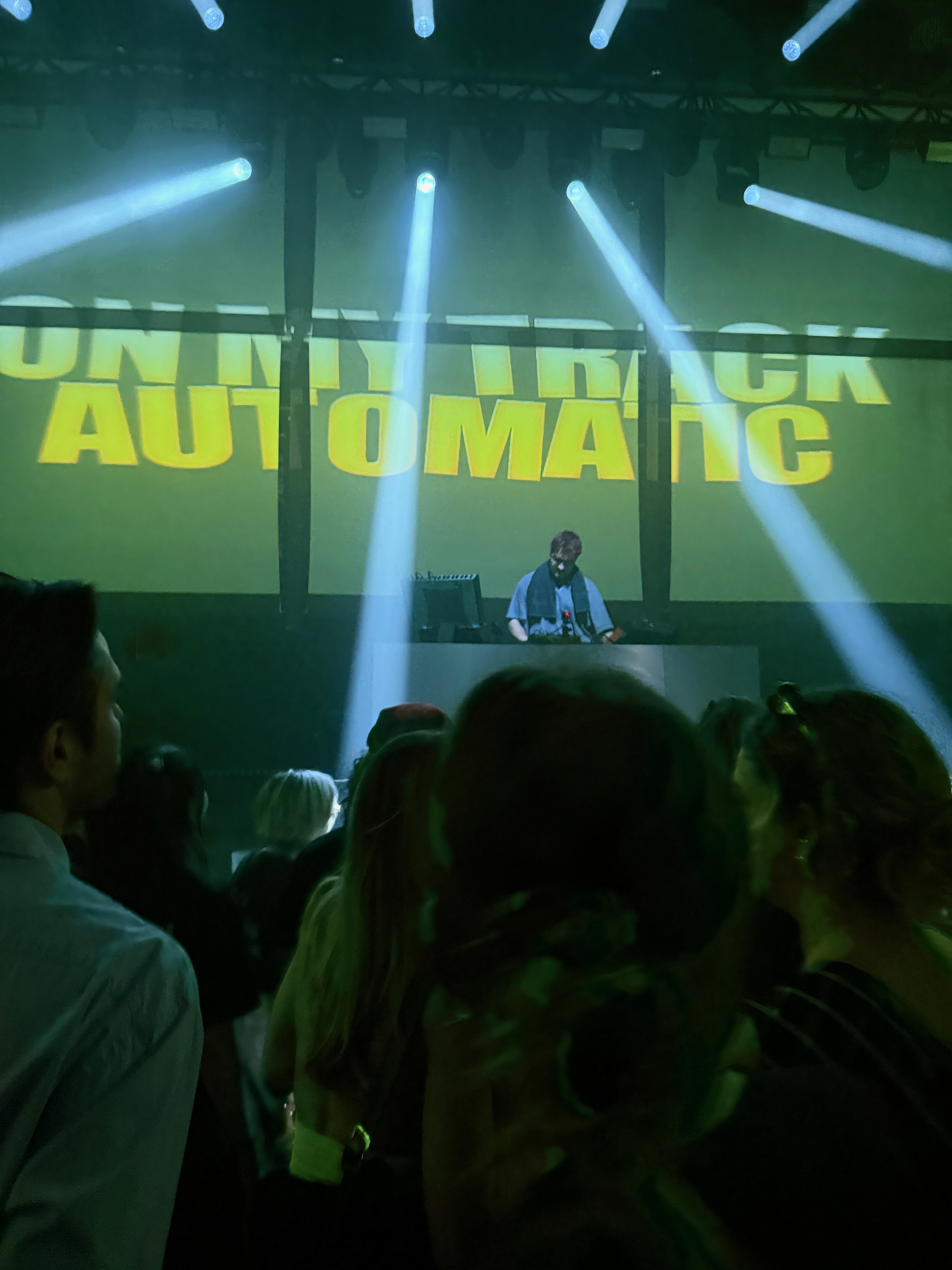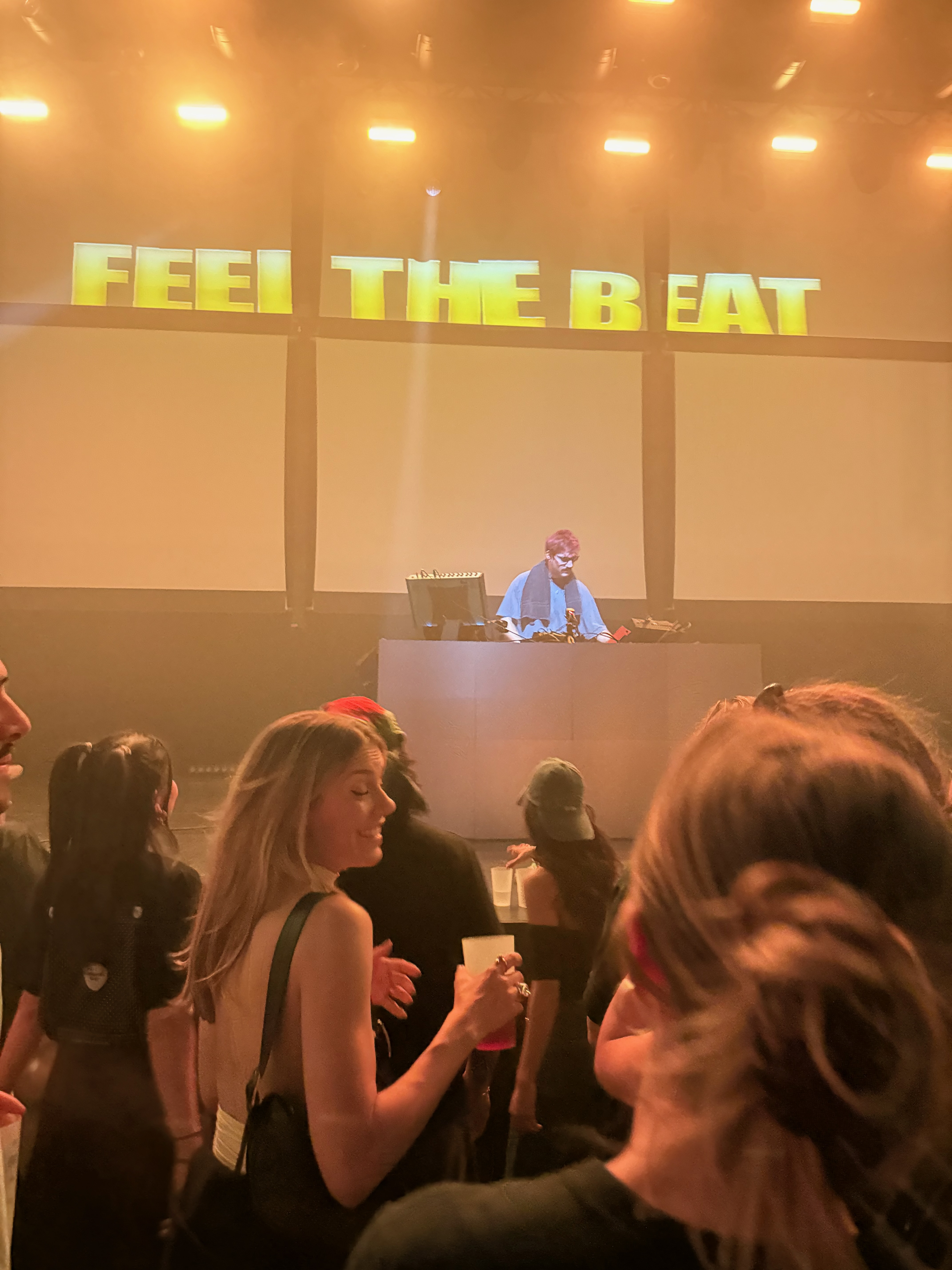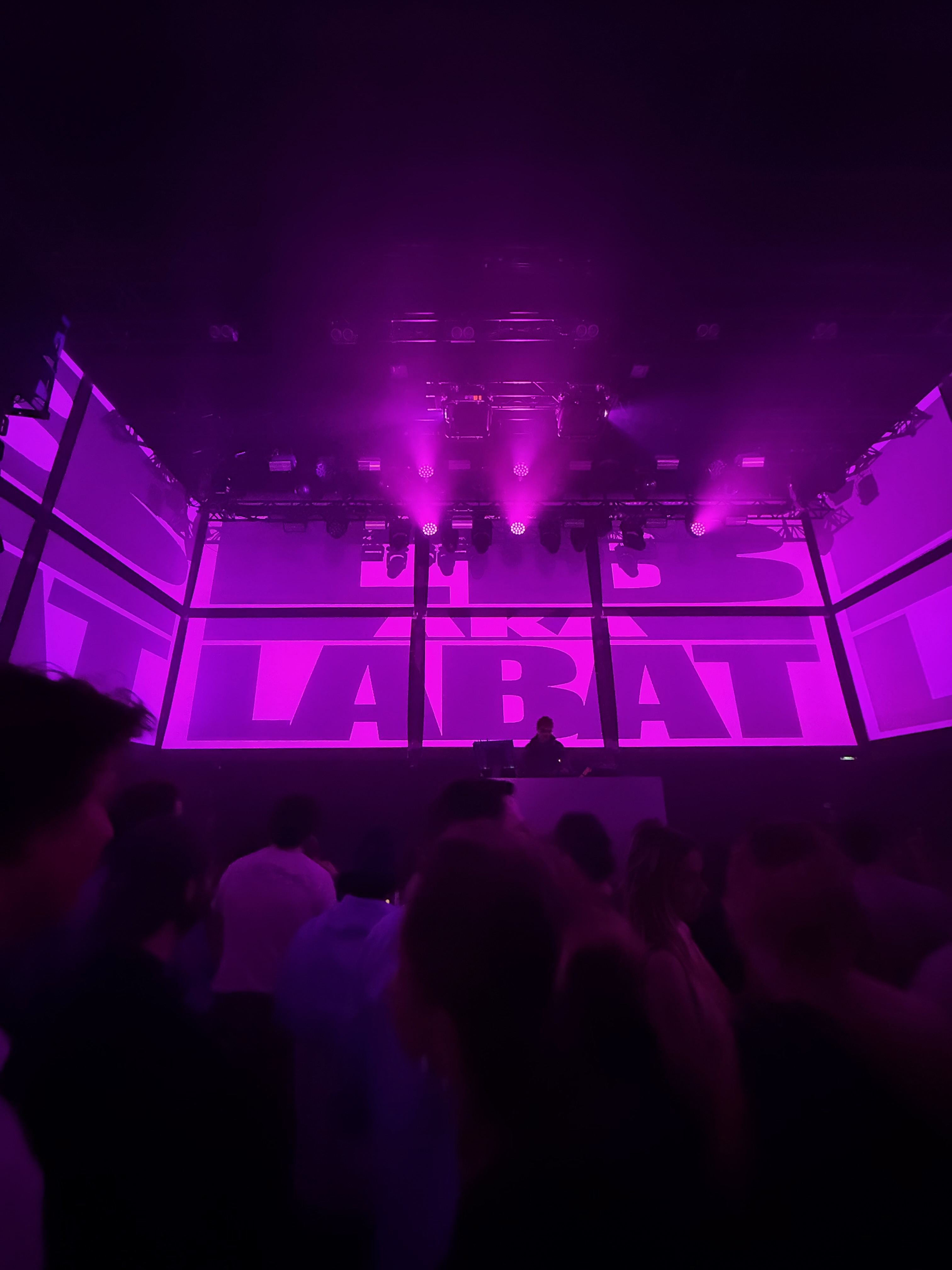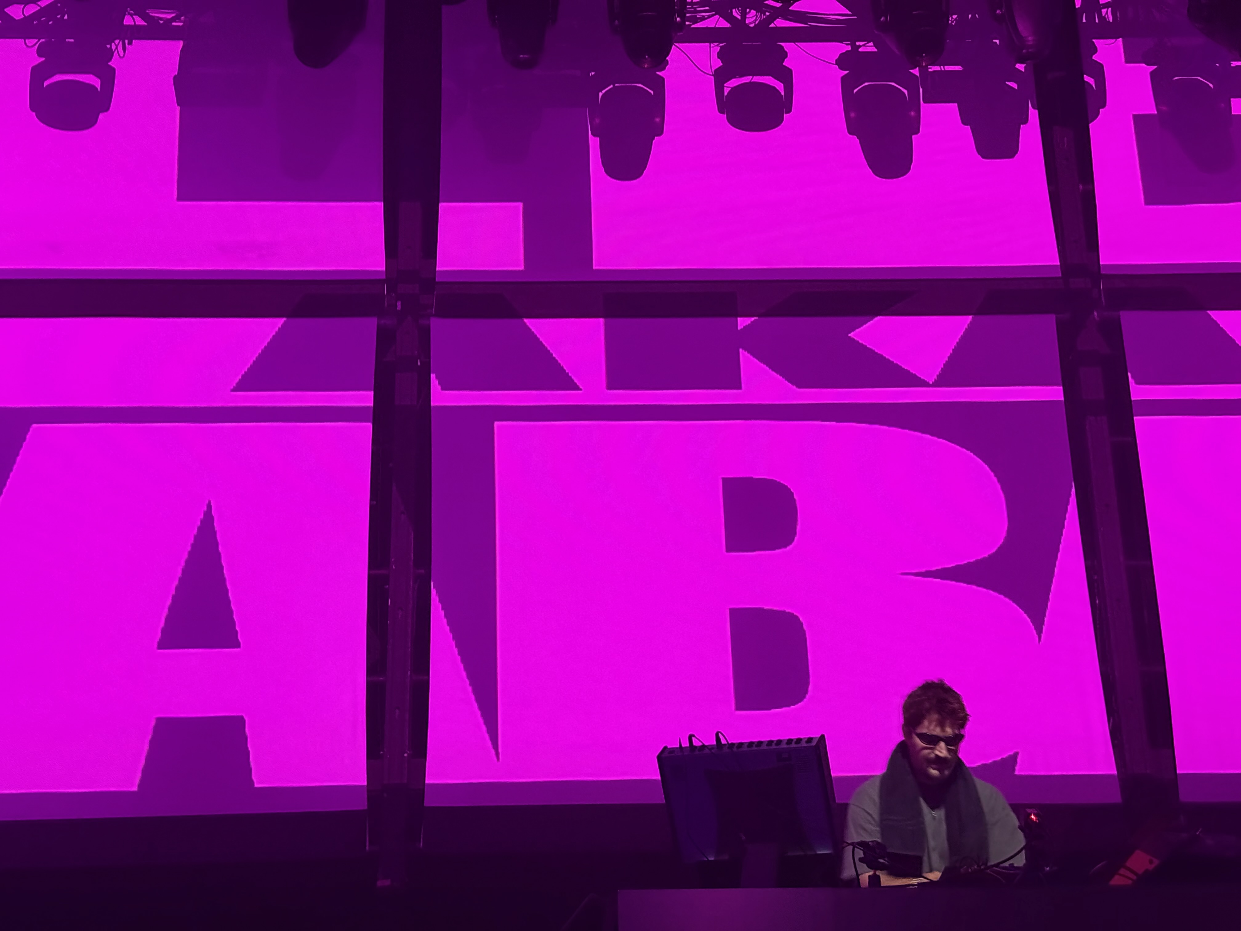 Un set d’une heure, euphorique, une espèce de grande party techno happy a l’énergie folle et dont le visuel design (grandes typographies projetées en rose électrique, vert acide et jaune saturé) fait partie intégrale.