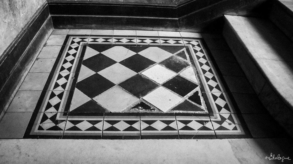NOUS VOICI FACE À UNE PROMENADE AU SEIN D’UN BÂTIMENT AUX PROPORTIONS ARCHITECTURALES BÂTIES DANS LES ANNÉES SOIXANTE-DIX.