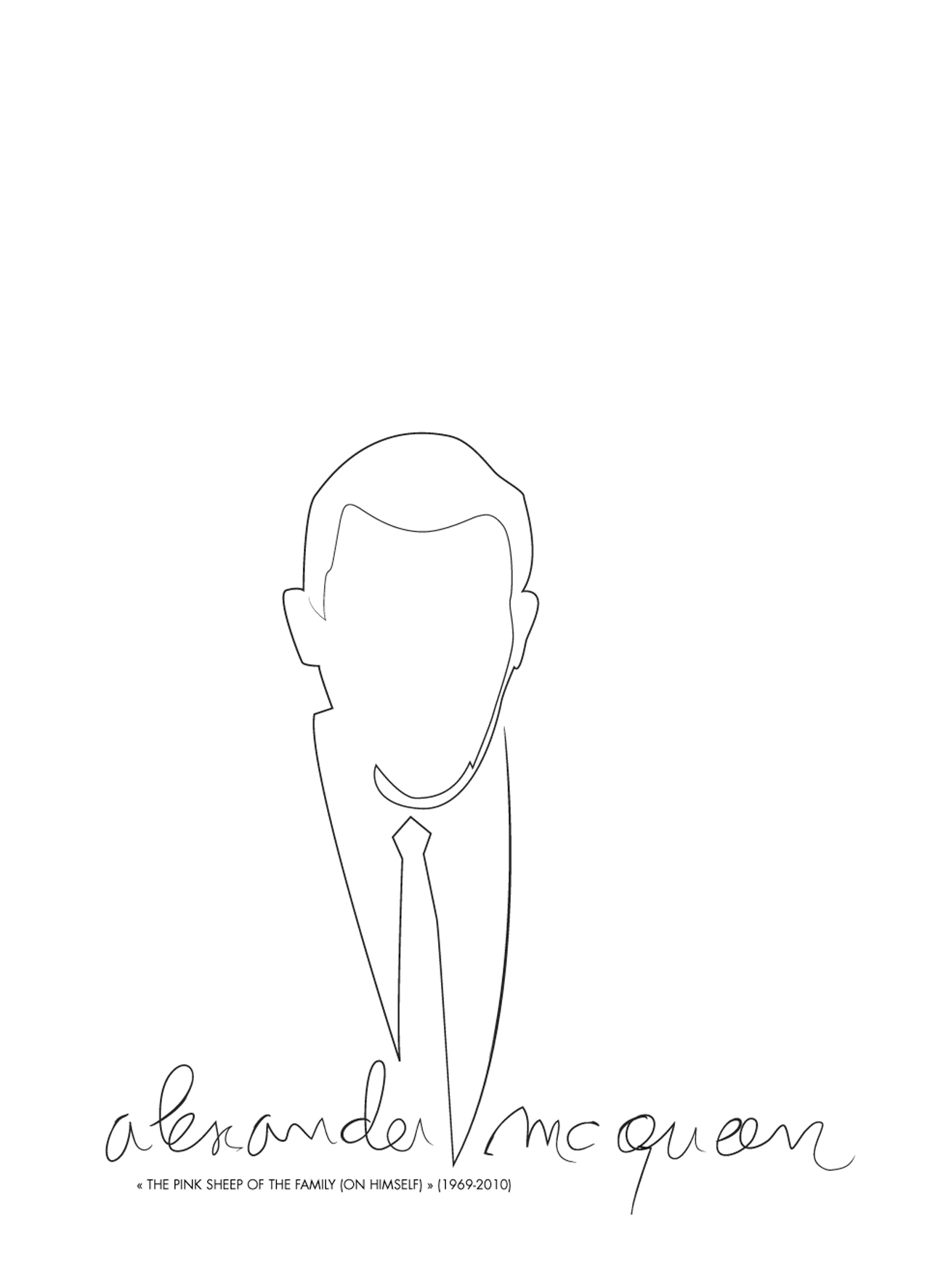 Le portrait d’un créateur, d’une personnalité de la mode avec une signature, une citation et le buste tracé d’un seul trait, comme pour en capter l’essentiel…