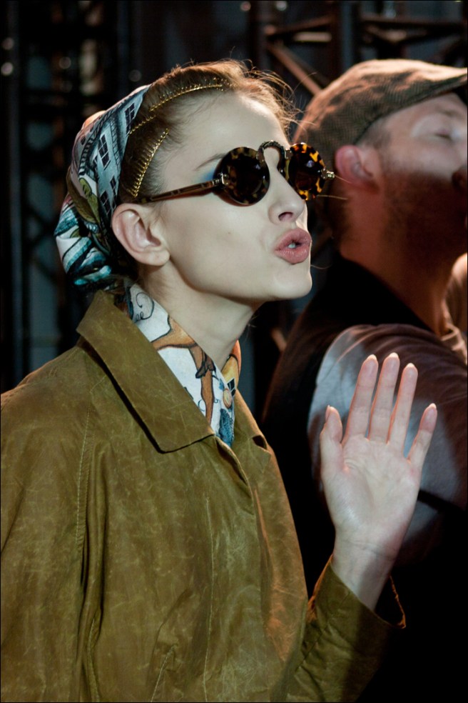 Prints on silk, jackets with patina, scarves on the heads… Most of the silhouettes were very loose, following the trend for more flexibility and more fluency, but in a Marco Zanini’s way; pleated, ruffled or rumpled dresses, lingerie and pajamas all this on…pretty little heads.