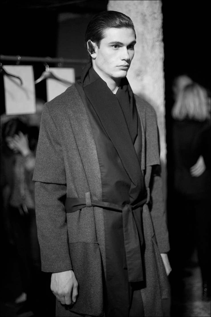It’s her second menswear collection inspired by the Ballet Russes and all the sophistication around. Mainly black and grey, she told me that it’s a revelation of her « dark side ».
