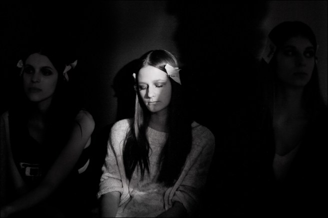 Tight fitting, laser cuts showing the skin, transparencies that « reveal » but not totally are the main characteristics of The age of consent, a collection not as daring and edgy as the references Teresa gave me (the powerful women of Helmut Newton or Guy Bourdin).