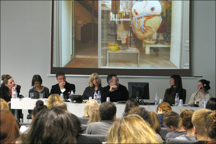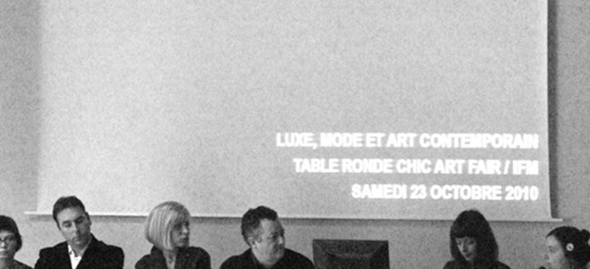 Participants: Elsa Janssen, responsable du pôle Art et Création aux Galeries Lafayette, Lorraine Audric, professeur à la Parsons School, Caroline Champion, spécialiste des relations entre art, mode et haute-cuisine, Émilie Faïf, scénographe-plasticienne, Alexandra Fau, journaliste et critique pour différentes revues d’art contemporain, Christophe Rioux, professeur d’économie.