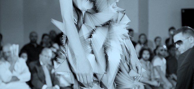 La femme d’Iris Van Herpen, véritable mutante, femme hybride arty-mode ou celle de Yinqing Yin n’en reste pas moins très féminine. Pour ces créatrices, chaque vêtement à un sens profond, semble porter avec elle tout un univers. L’effet matière rendu par la modélisation 3D, les plissés ou le laçage revêt une dimension très importante dans ces créations leur conférant une dimension extra-portable indéniable.